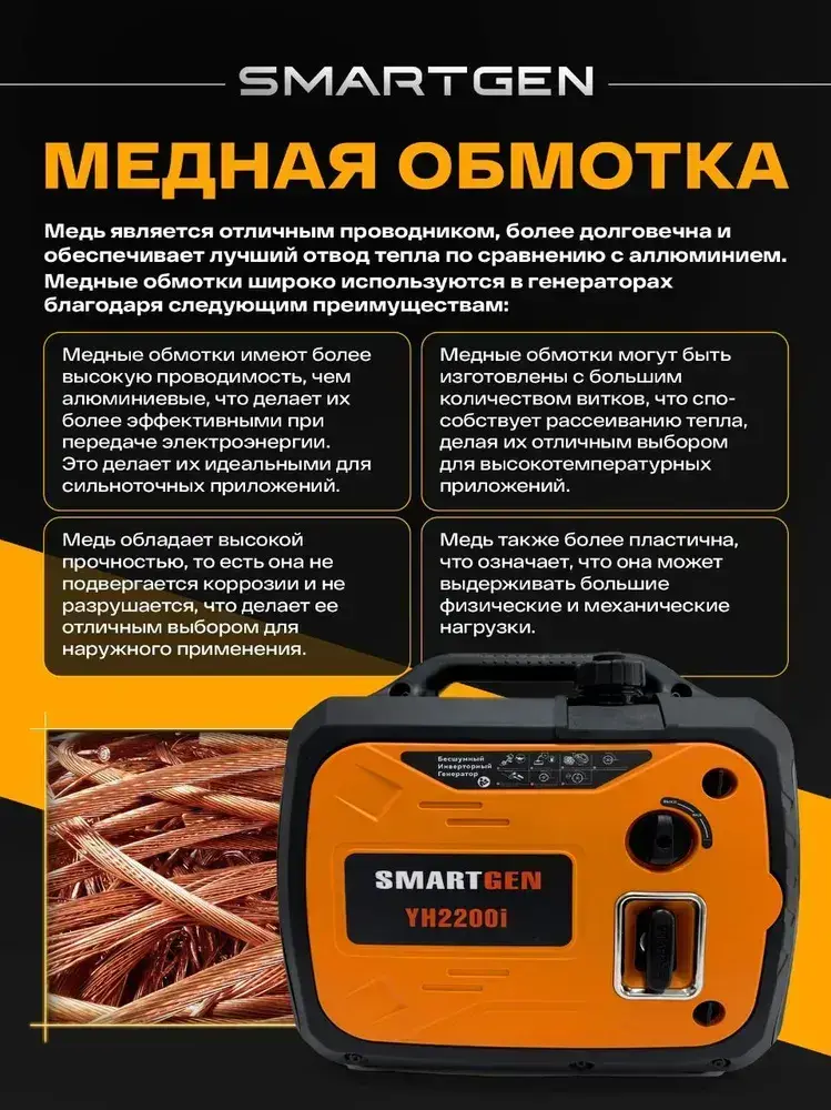 Генератор инверторный бензиновый SMARTGEN 2кВт 4л МЕДНАЯ ОБМОТКА