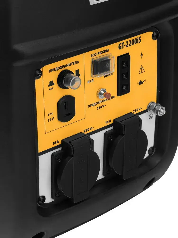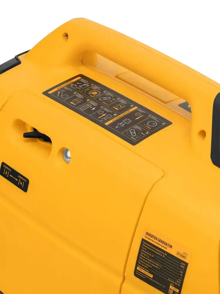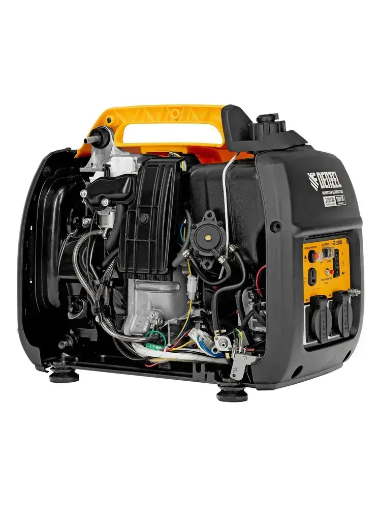 Генератор инверторный DENZEL GT-2200iS, 2.2 кВт и 113 см3 объем двигателя, 4 л объем топливного бака, ручной стартер и режим ECO, 2 розетки и выход постоянного тока 12 В 94702