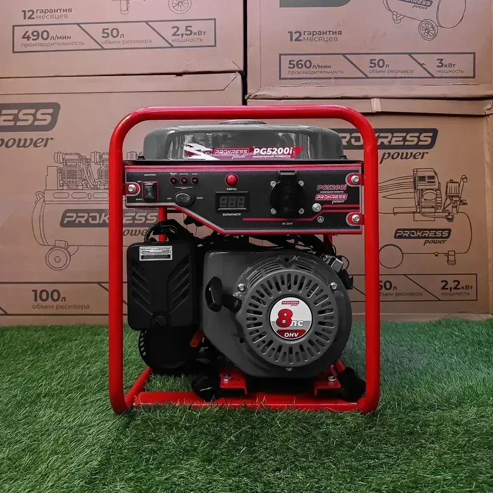Генератор инверторный PROKRESS POWER PG5200i (3,8/4,1кВт, 9.6л, 25кг, ручной пуск) открытый