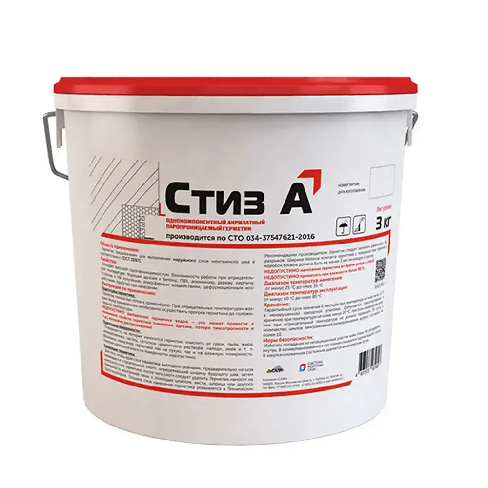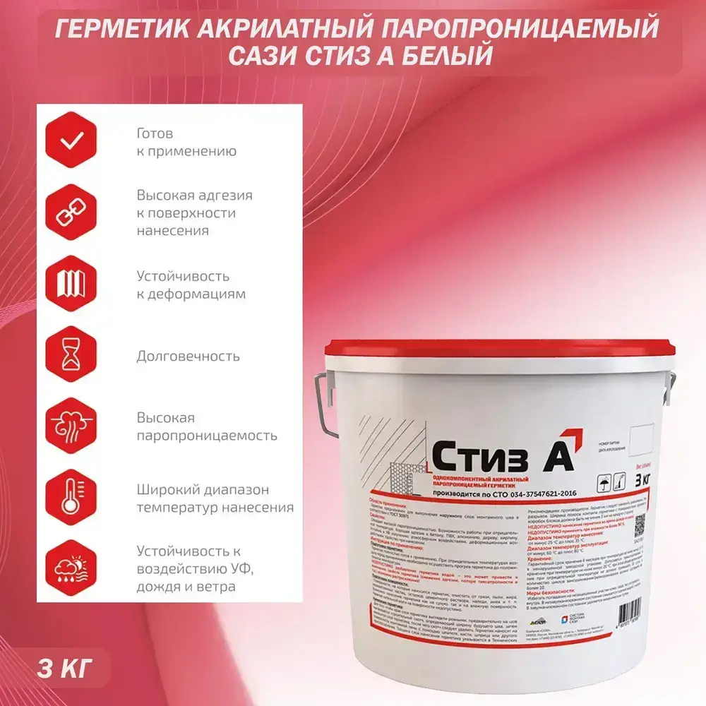 Герметик акрилатный паропроницаемый Сази Стиз А белый 3 кг