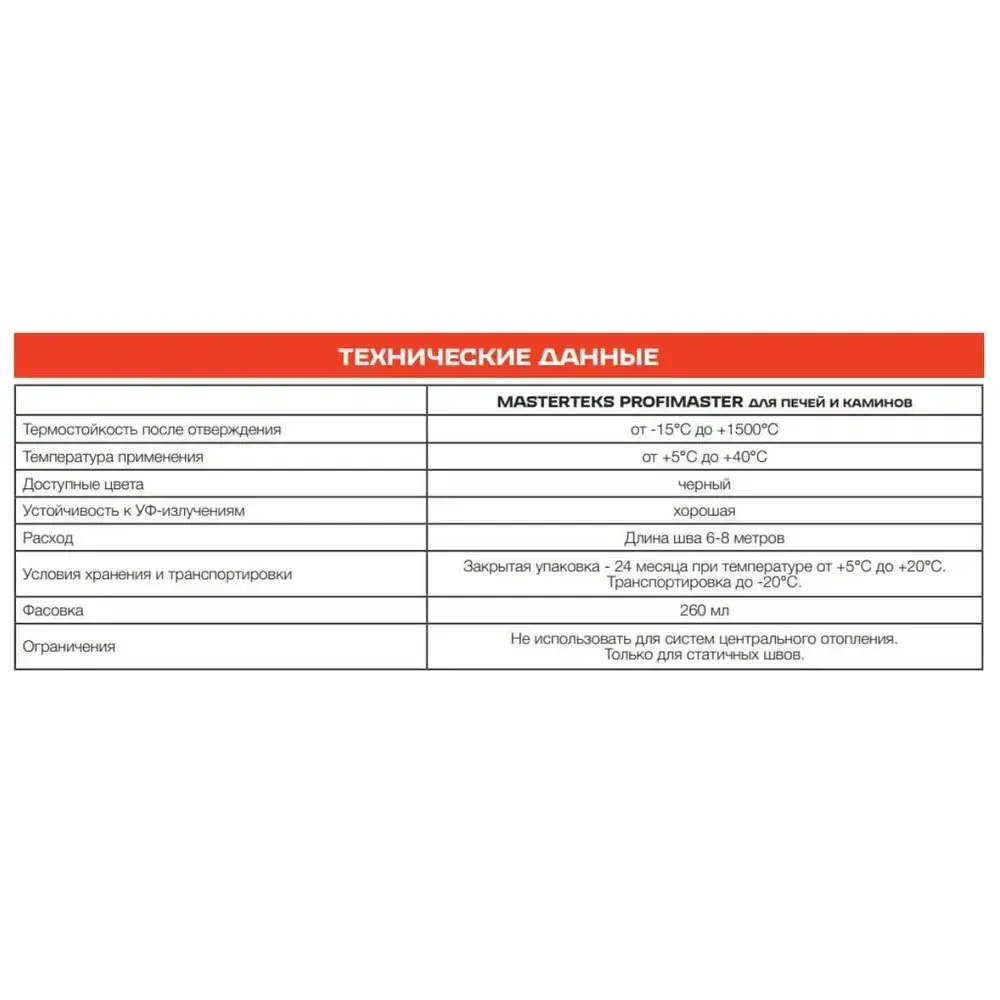 Герметик для печей и каминов высокотемпературный MasterTeks ProfiMaster, силикатный, 260мл, черный