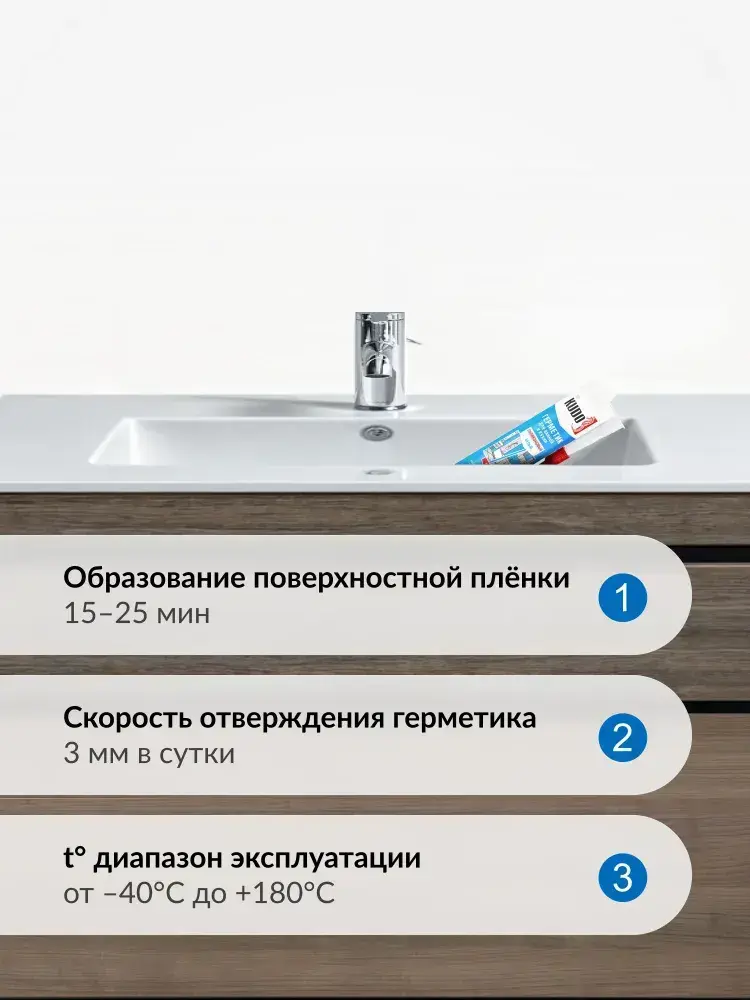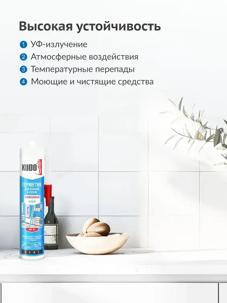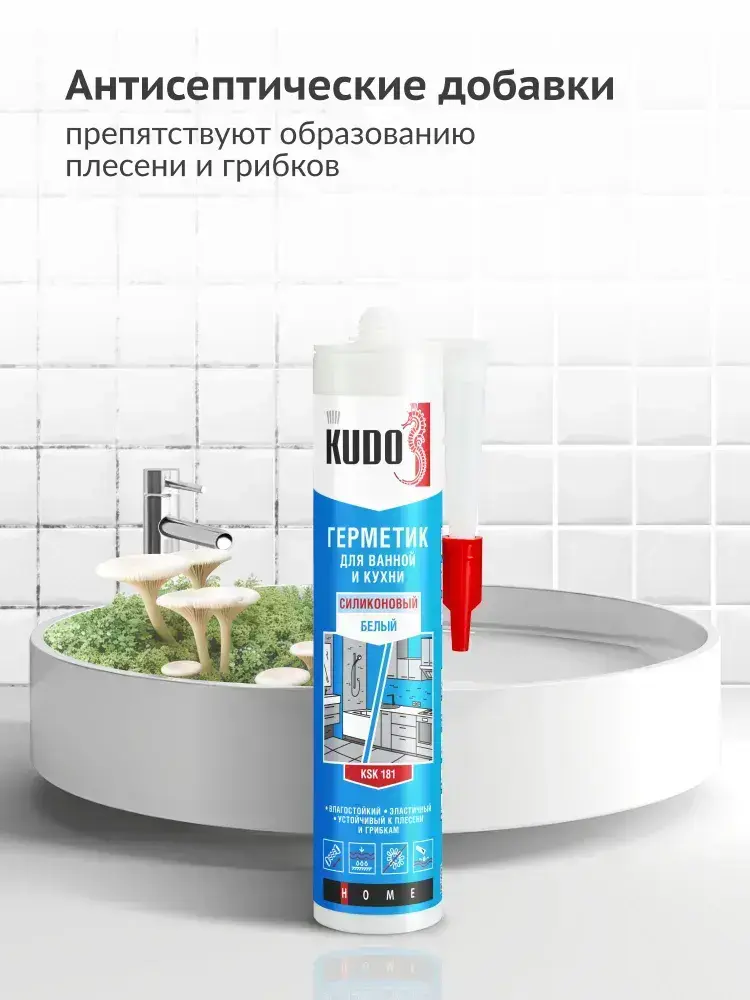 Герметик для ванной и кухни силиконовый KUDO "KSK 181", 280 мл, белый