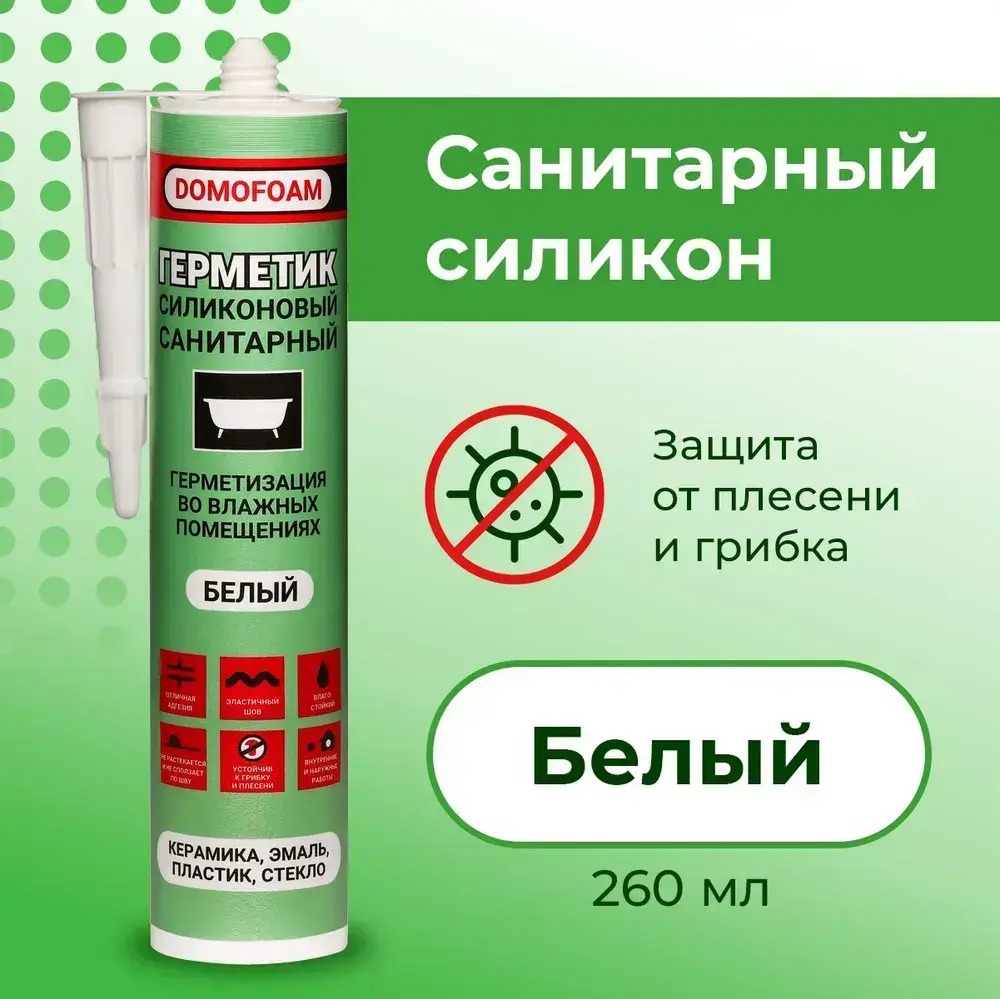 Герметик санитарный силиконовый для ванной 260мл DOMOFOAM, белый