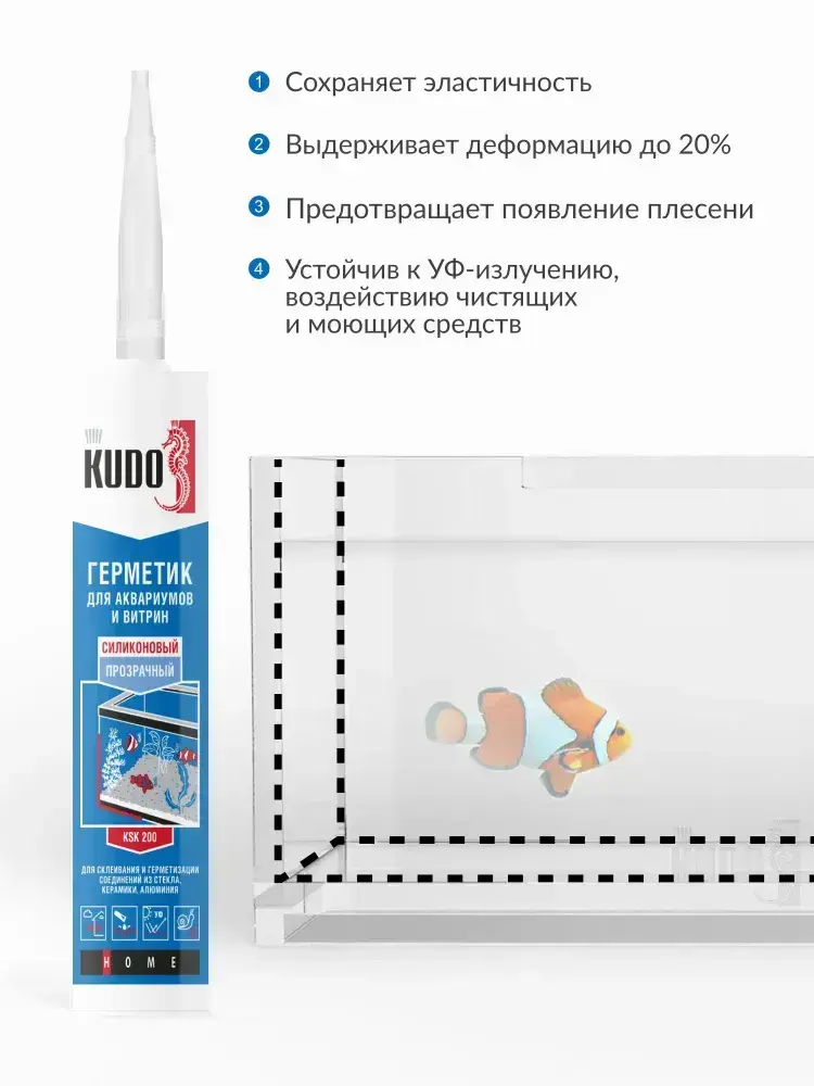 Герметик силиконовый KUDO "KSK 200" для аквариумов и витрин, прозрачный