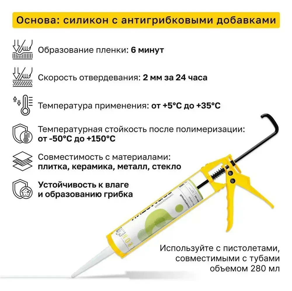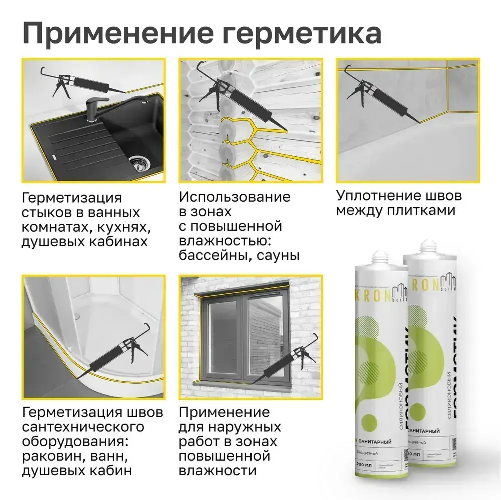 Герметик силиконовый санитарный KRONbuild прозрачный 280 мл