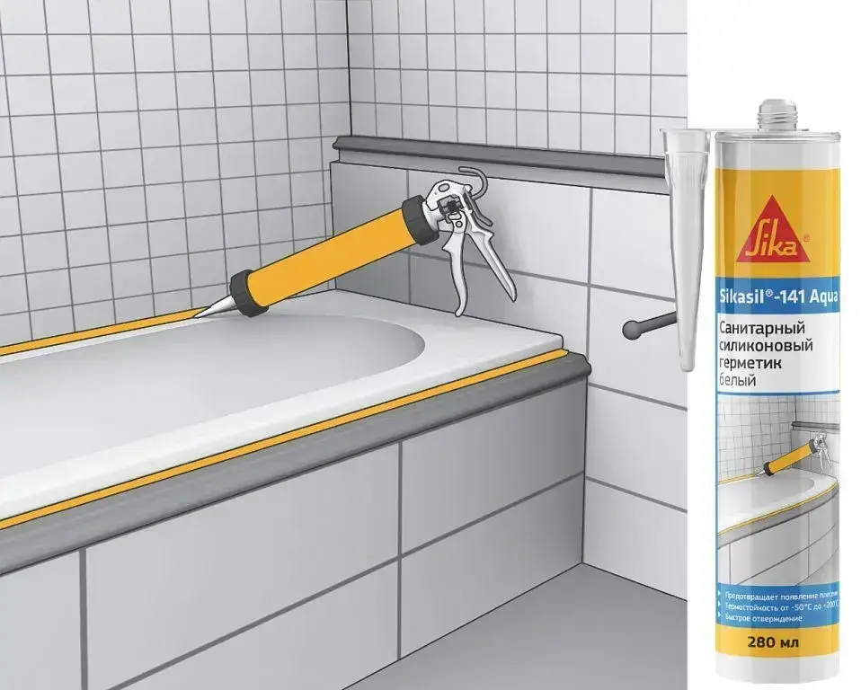 Герметик силиконовый санитарный Sikasil-141 Aqua, 280мл, прозрачный
