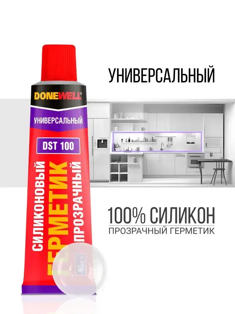 Герметик силиконовый универсальный DONEWELL DST-101, в тюбике 40 мл, Прозрачный