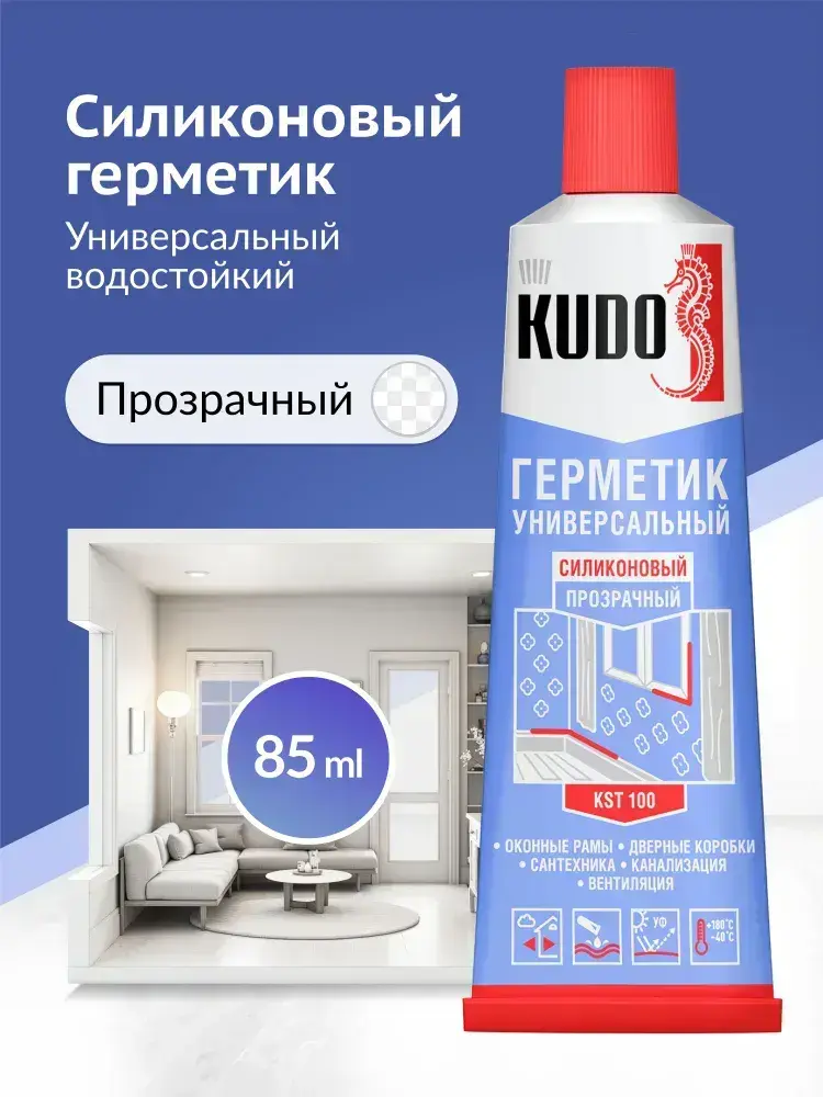 Герметик силиконовый универсальный KUDO "KST 100", 85 мл, прозрачный
