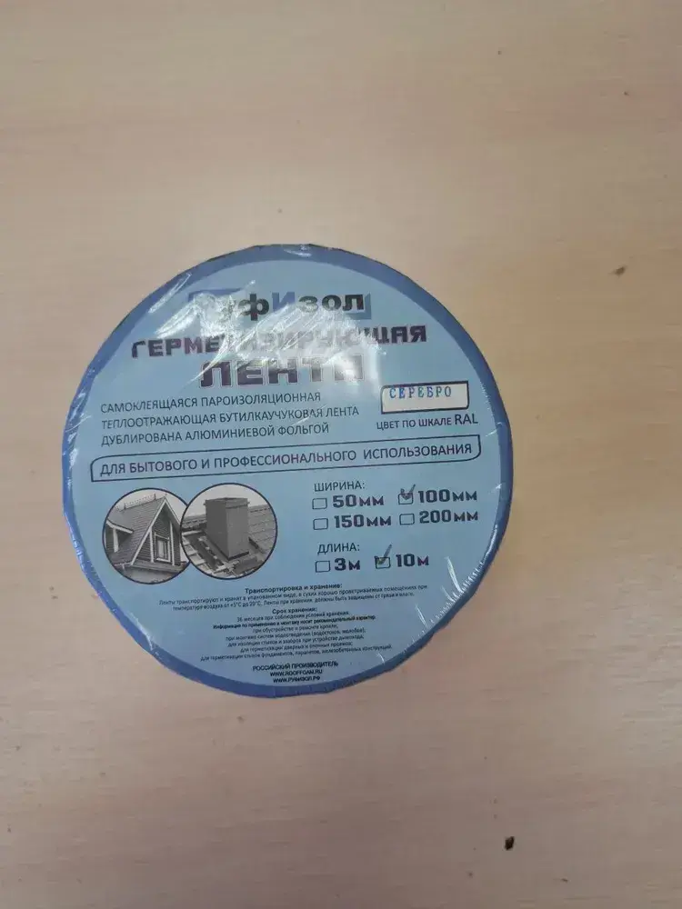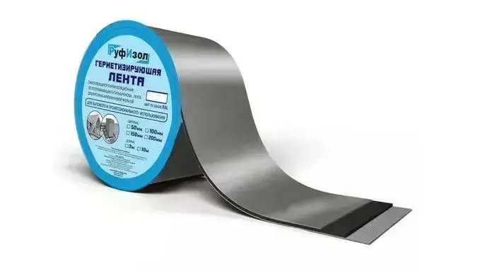 Герметизирующая лента бутилкаучуковая самоклеящаяся "Руфизол". Ширина 100 мм (10 метров) для герметизации кровли, ванной, строительных работ, серебристая на алюминиевой основе