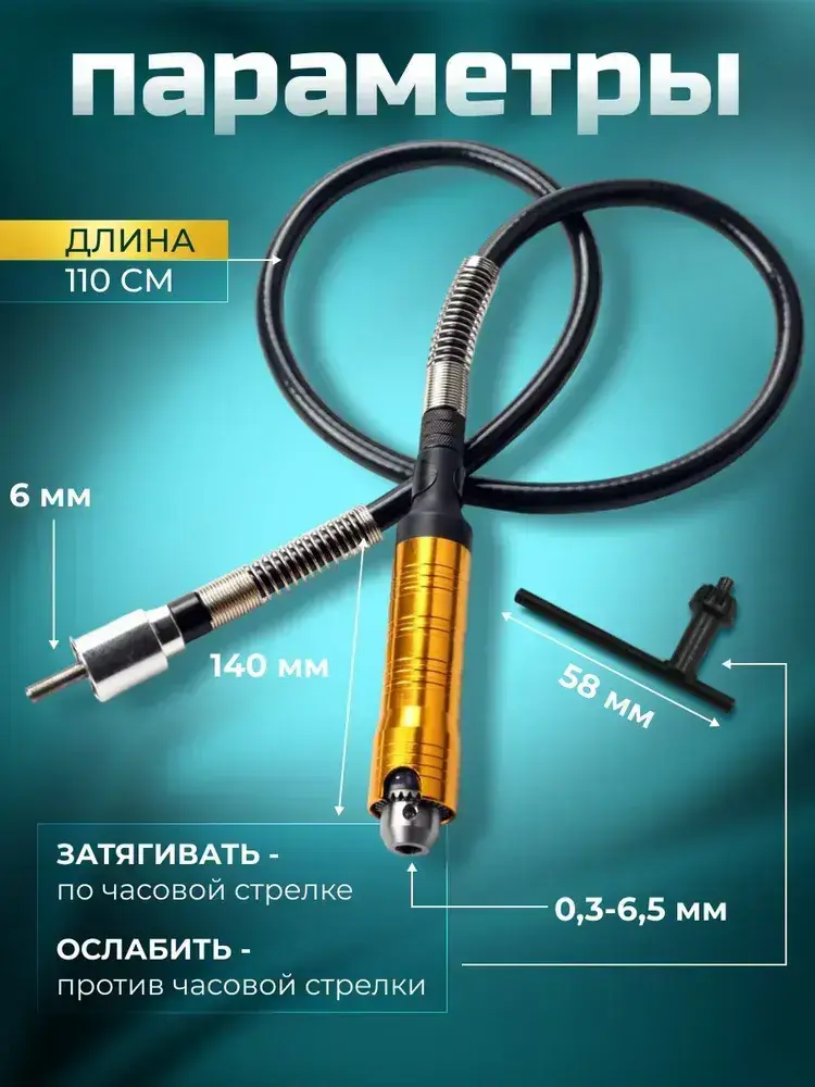 Гибкий вал для гравера с ключевым патроном / 110 см