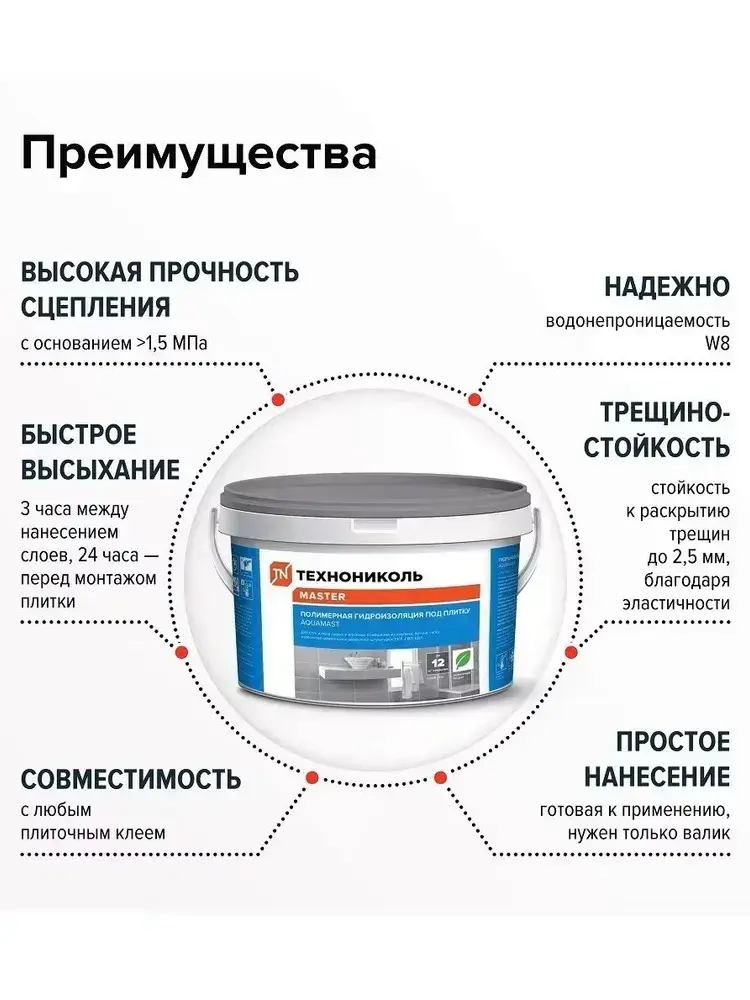 Гидроизоляция для ванны Технониколь AquaMast, ведро 5 кг, мастика гидроизоляционная под плитку