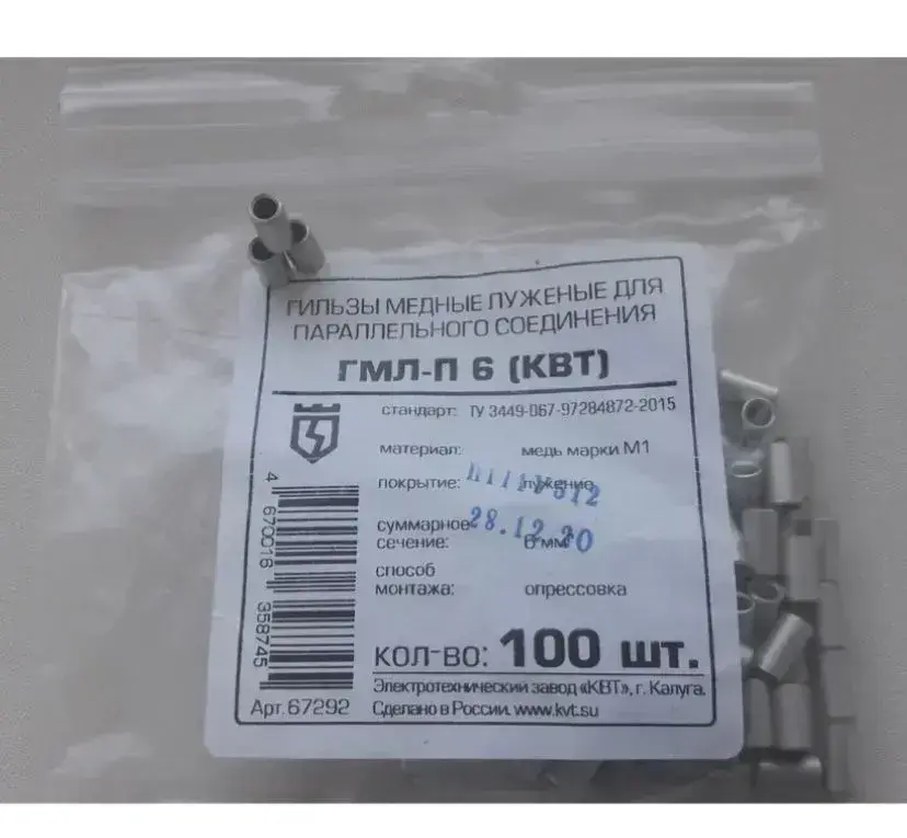 Гильза кабельная ГМЛ-П 6 медная луженая для параллельного соединения 30 шт
