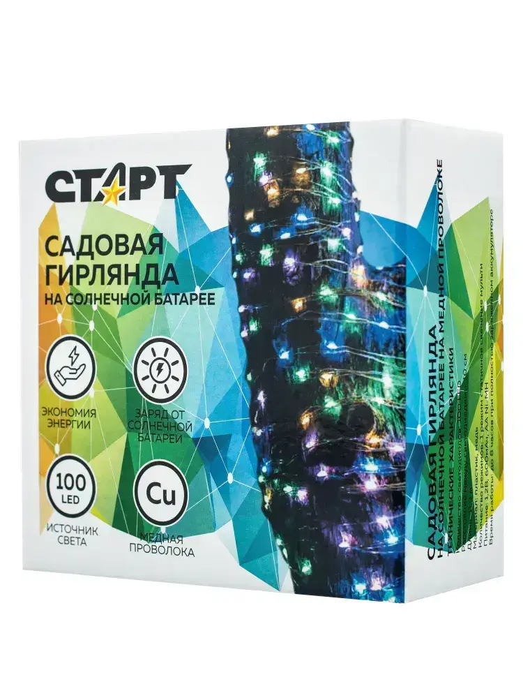 Гирлянда роса уличная СТАРТ для сада на солнечной батарее RGB