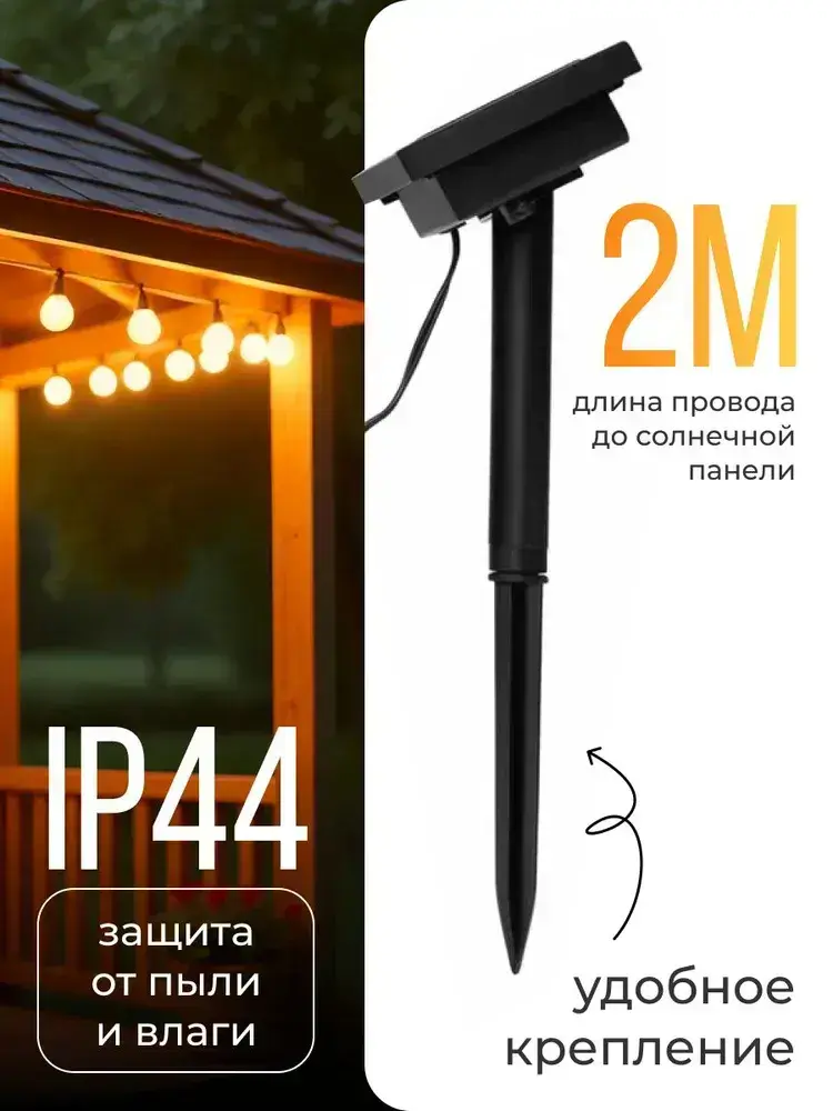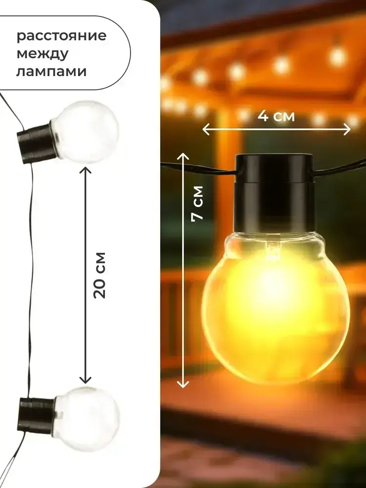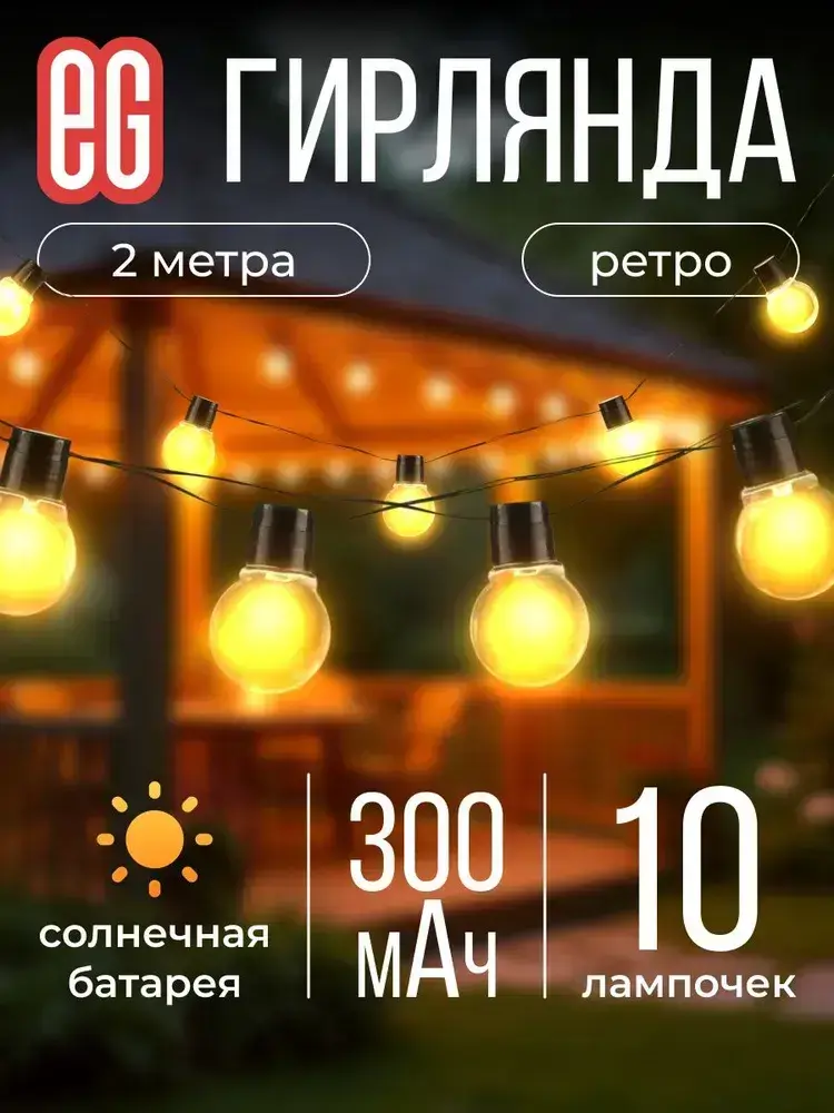 Гирлянда уличная ЕВРОГАРАНТ на солнечной батарее ретро Шар 2 метра