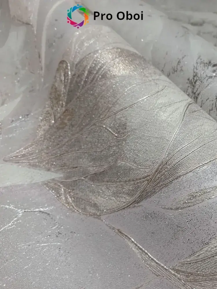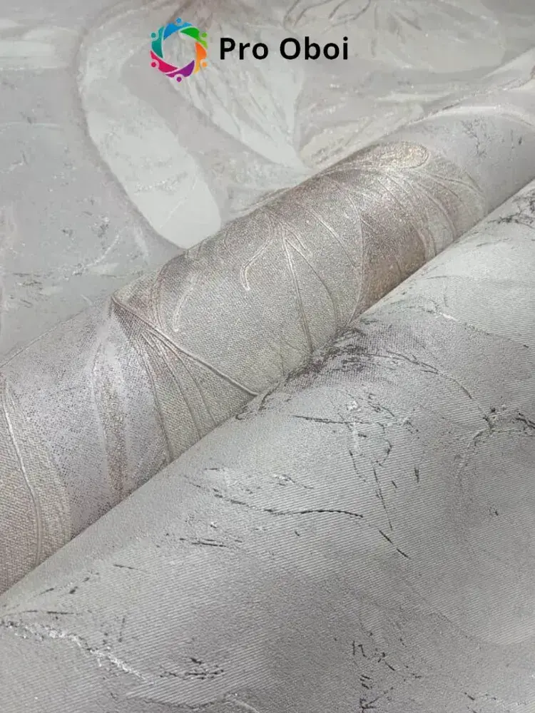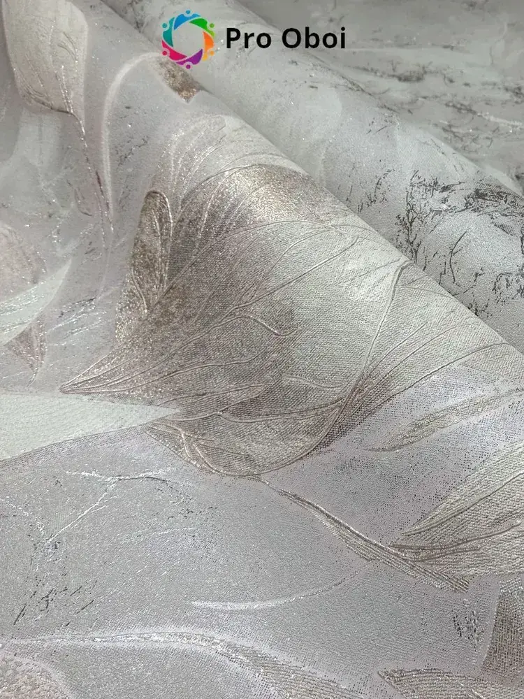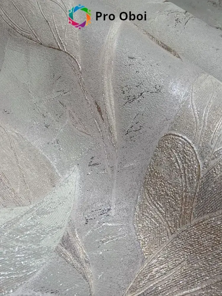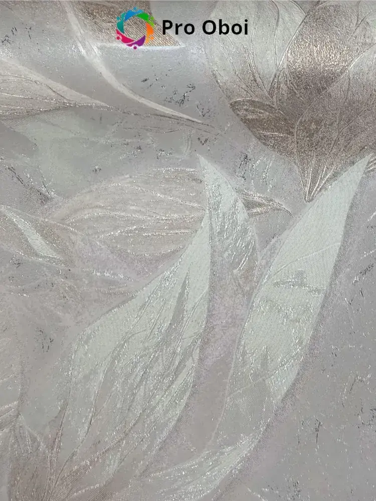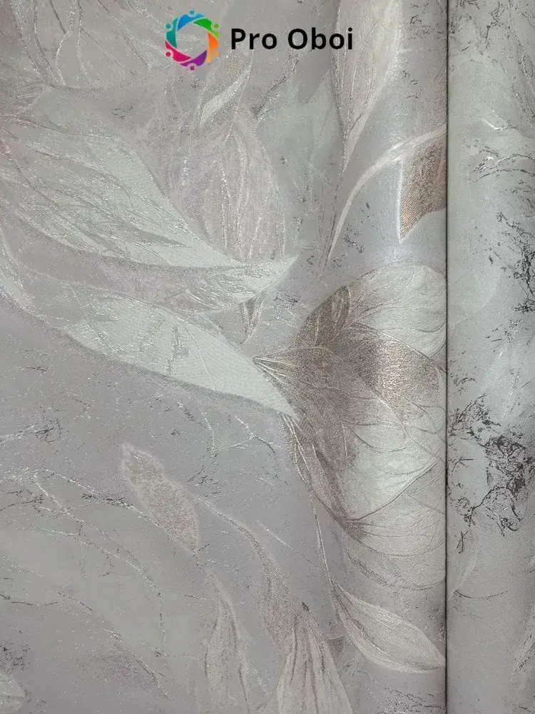 Gomel-FOX Обои флизелиновые метровые Chloe, вспененный винил серый с розовым оттенком цветы, листья, в спальню, в прихожую, в кухню, длина 10м ширина 1.06м