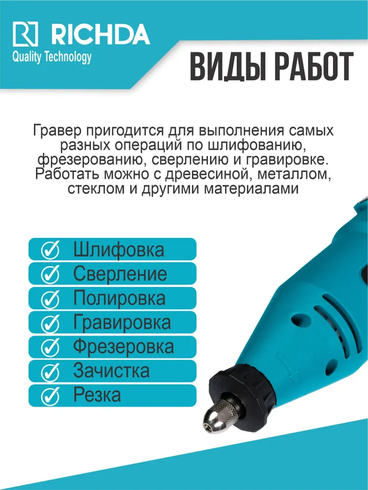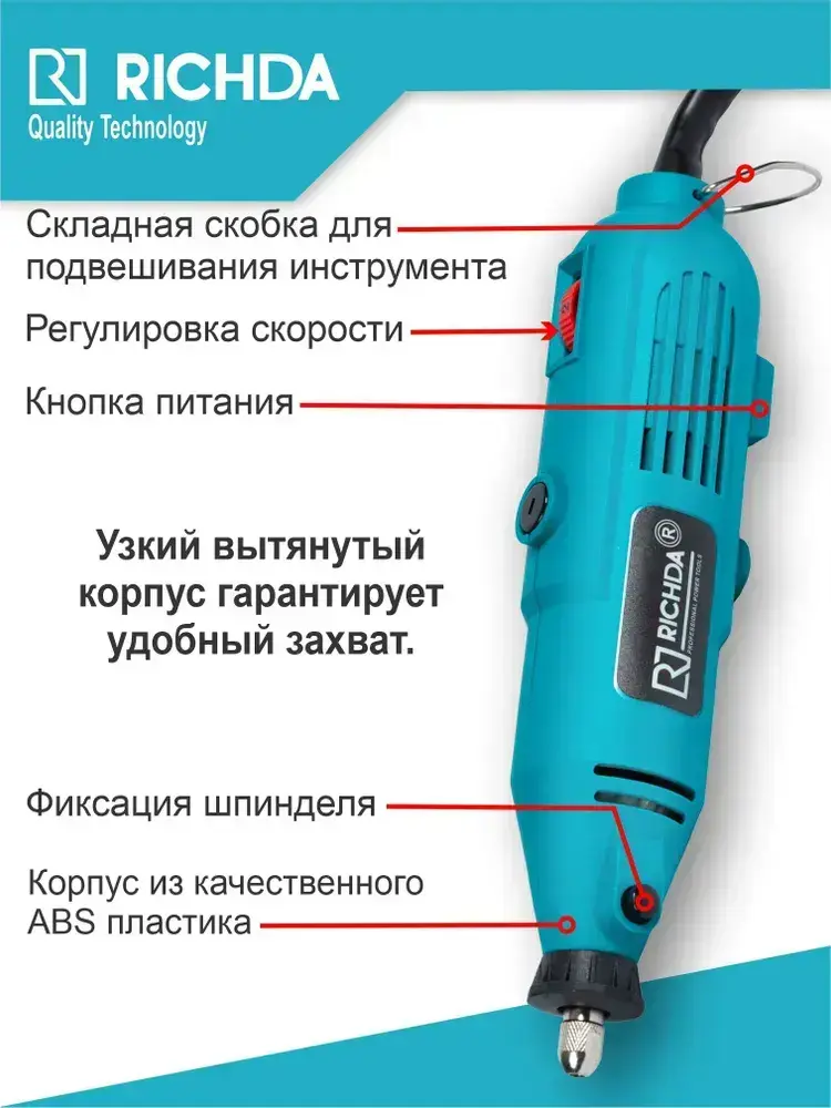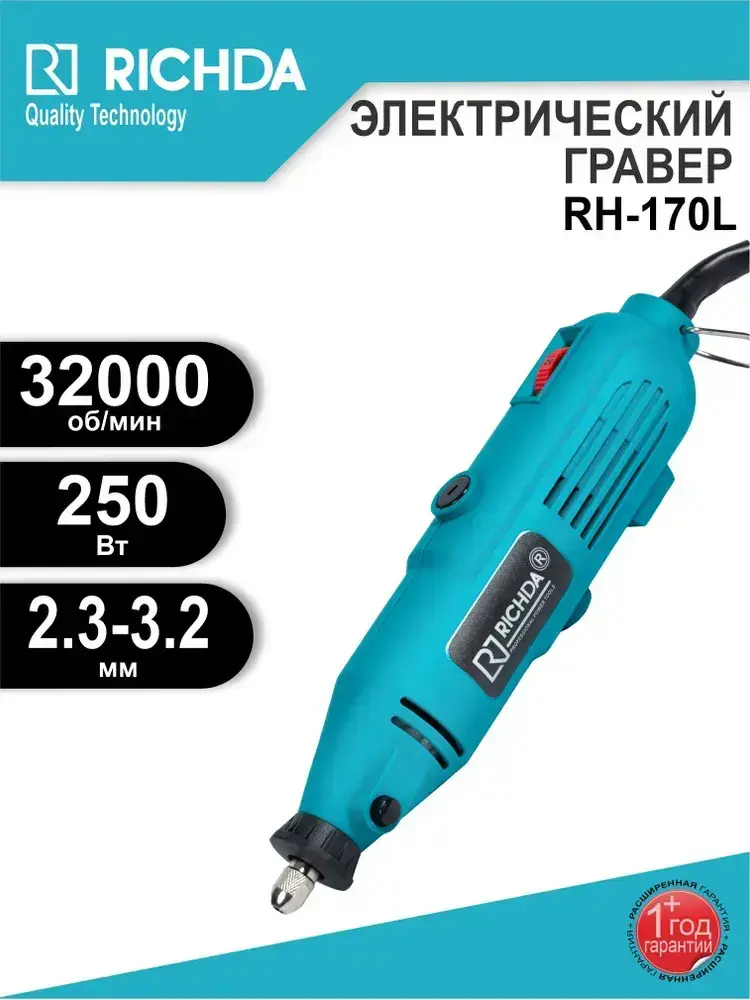 Гравер электрический 250Вт, RICHDA, 3.2мм, 10000-32000 об/мин