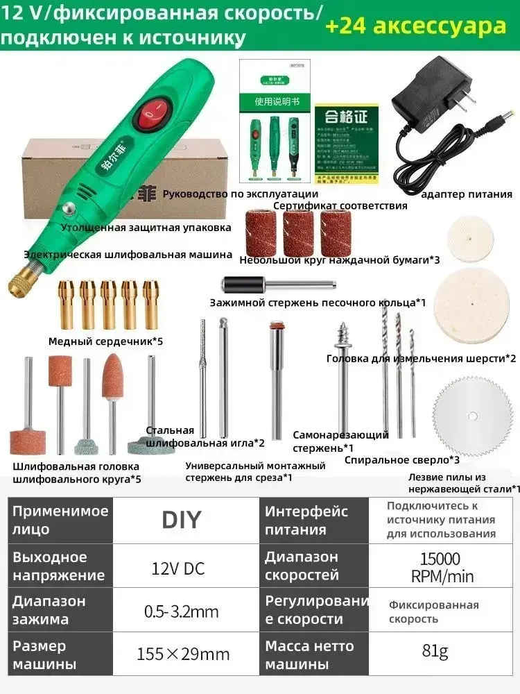 Гравер электрический высокомощный с насадками+ 24 аксессуара