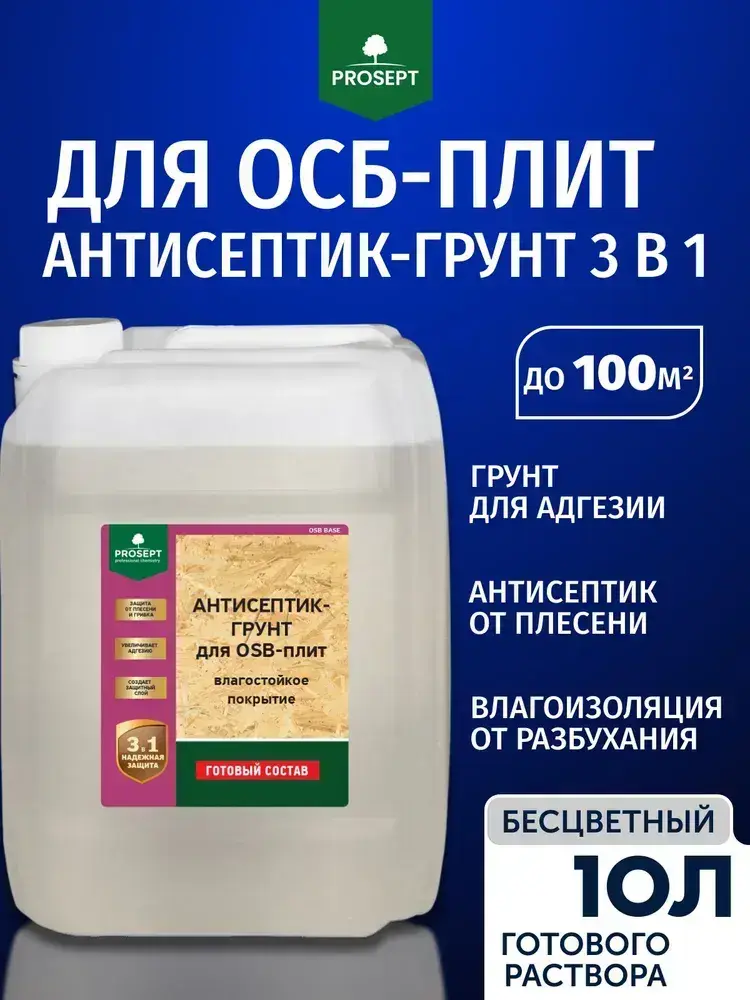 Грунт + Антисептик для ОСБ плит невымываемый PROSEPT (Просепт) ОSB бесцветный 10 л (арт. 044-10)