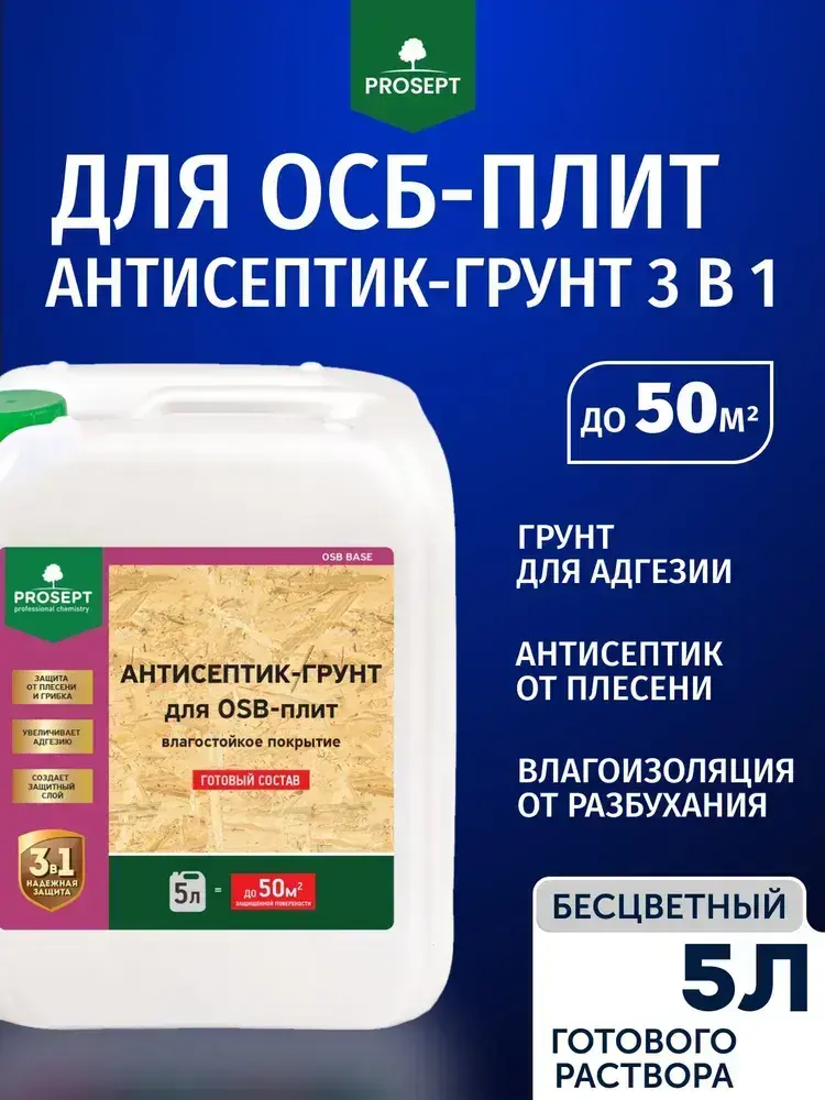 Грунт + Антисептик для ОСБ плит невымываемый PROSEPT (Просепт) ОSB бесцветный 5л (арт. 044-05)