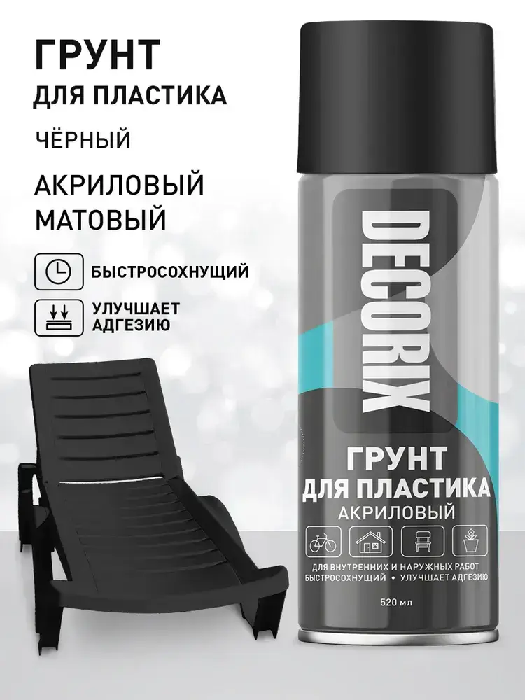 Грунт для пластика аэрозольный черный матовый DECORIX - грунтовка для пластика в баллончике 520 мл