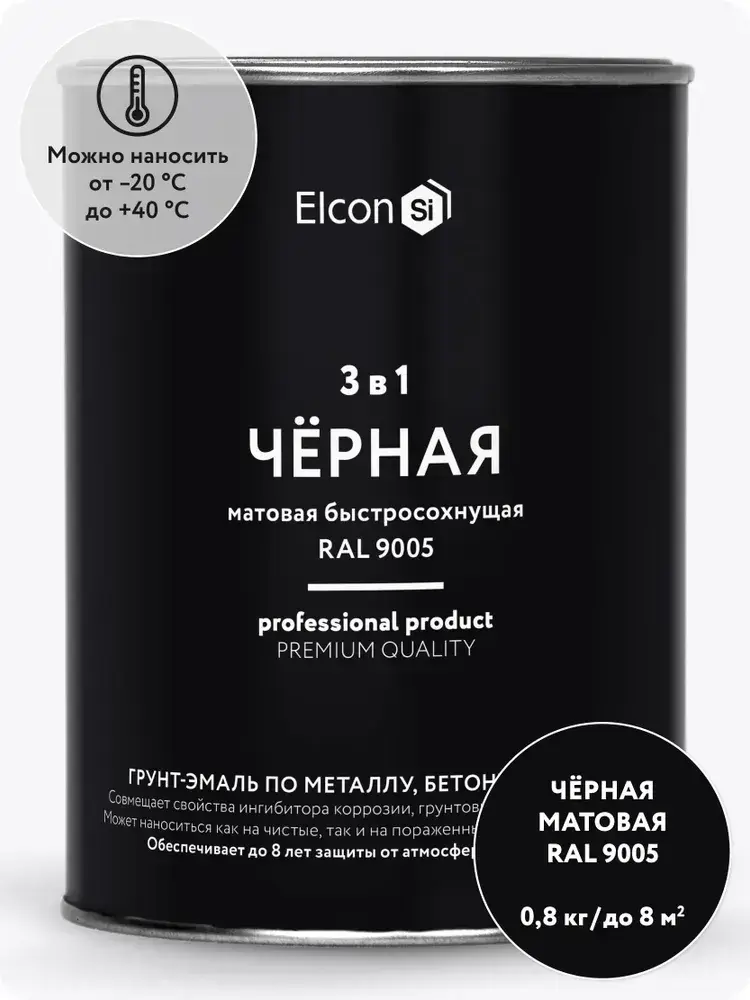 Грунт-эмаль 3 в 1, краска по металлу, по ржавчине, быстросохнущая, матовое покрытие, 0,8 кг, черная
