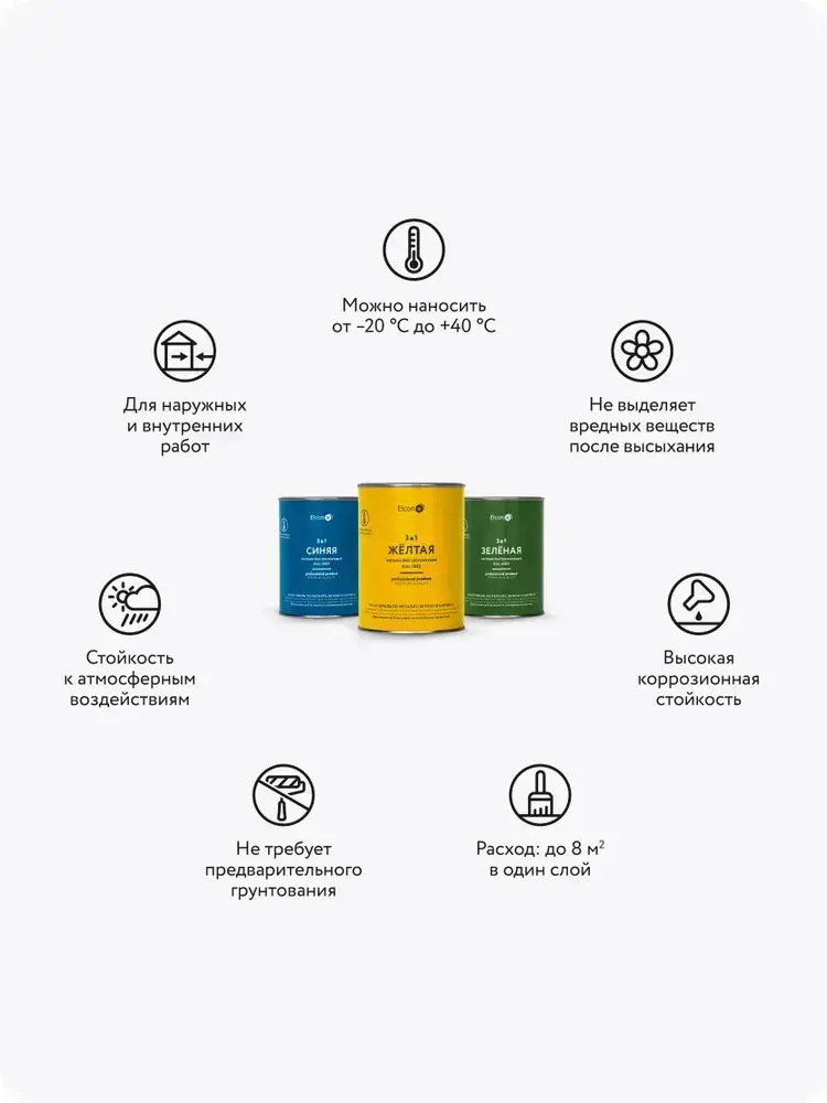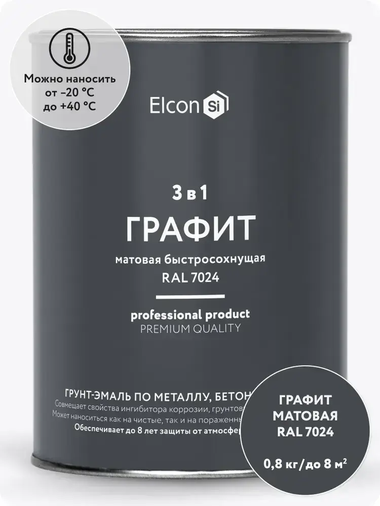 Грунт-эмаль 3 в 1, краска по металлу, по ржавчине, быстросохнущая, матовое покрытие, 0,8 кг, графит
