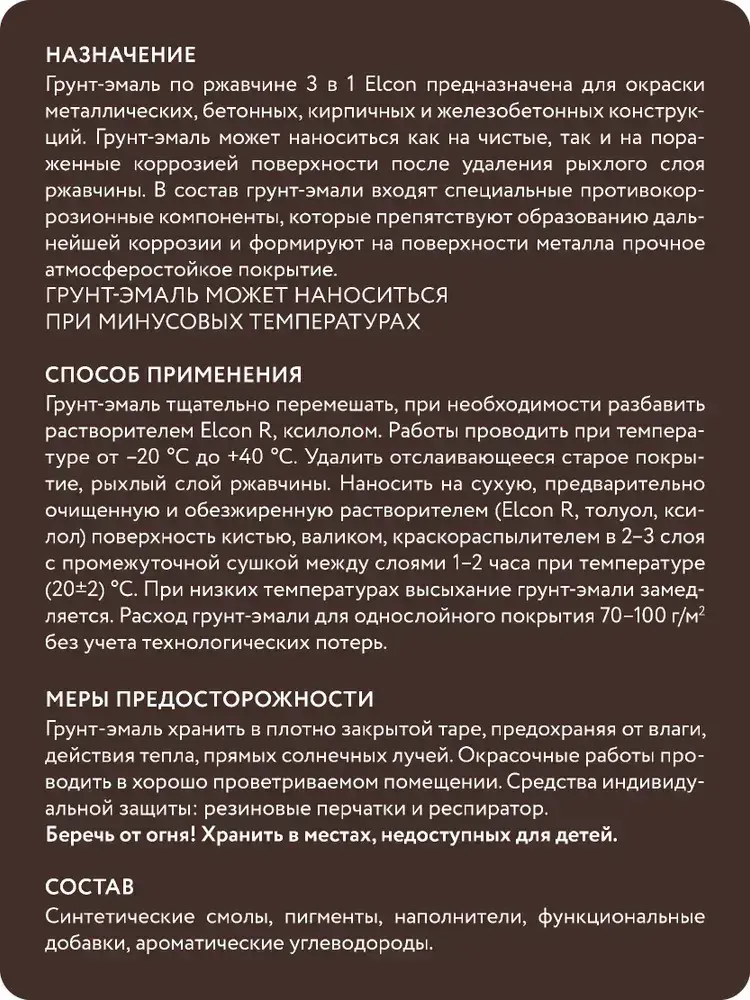 Грунт-эмаль 3 в 1, краска по металлу, по ржавчине, быстросохнущая, матовое покрытие, 0,8 кг, коричневая