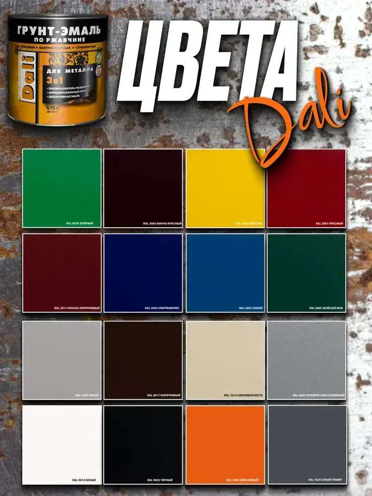 Грунт-эмаль краска по ржавчине 3в1 DALI Черный RAL 9005 2л