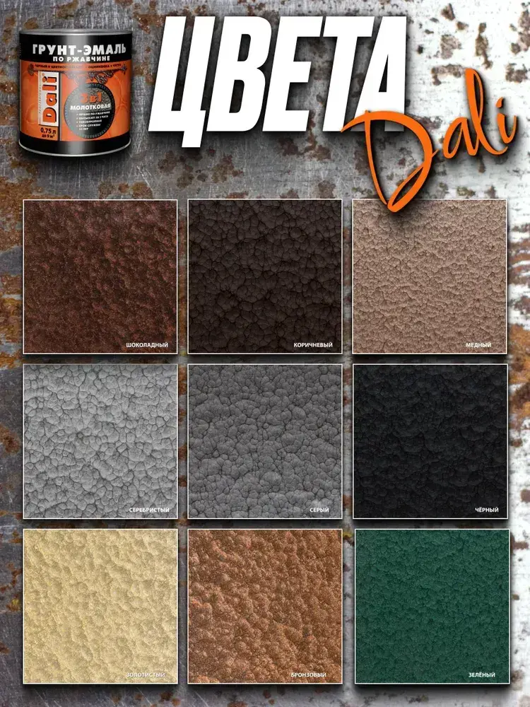 Грунт эмаль по ржавчине 3 в 1 Молотковая DALI Шоколадный 2л