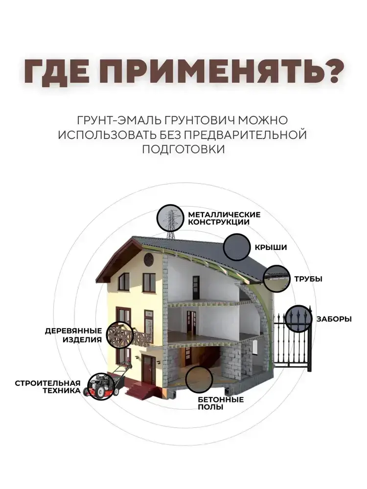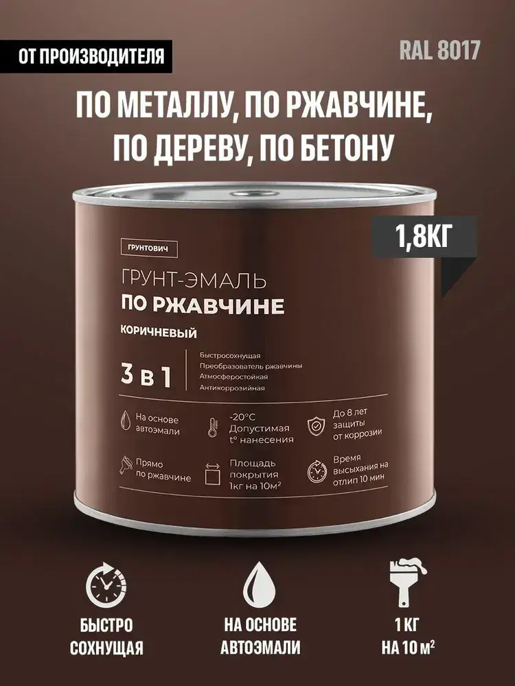 Грунтович Грунт-эмаль Быстросохнущая, Гладкая, Матовое покрытие, 1.8 кг, коричневый