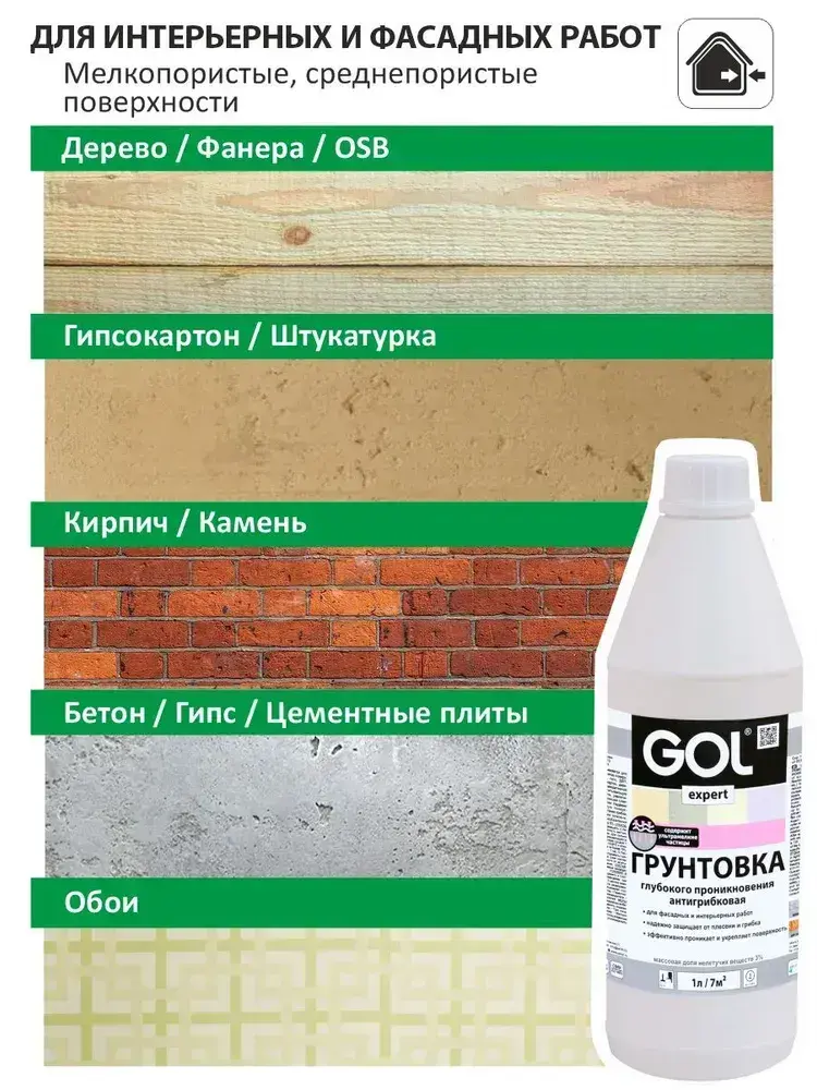 Грунтовка акриловая АНТИГРИБКОВАЯ GOLexpert 1 л