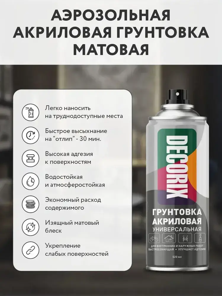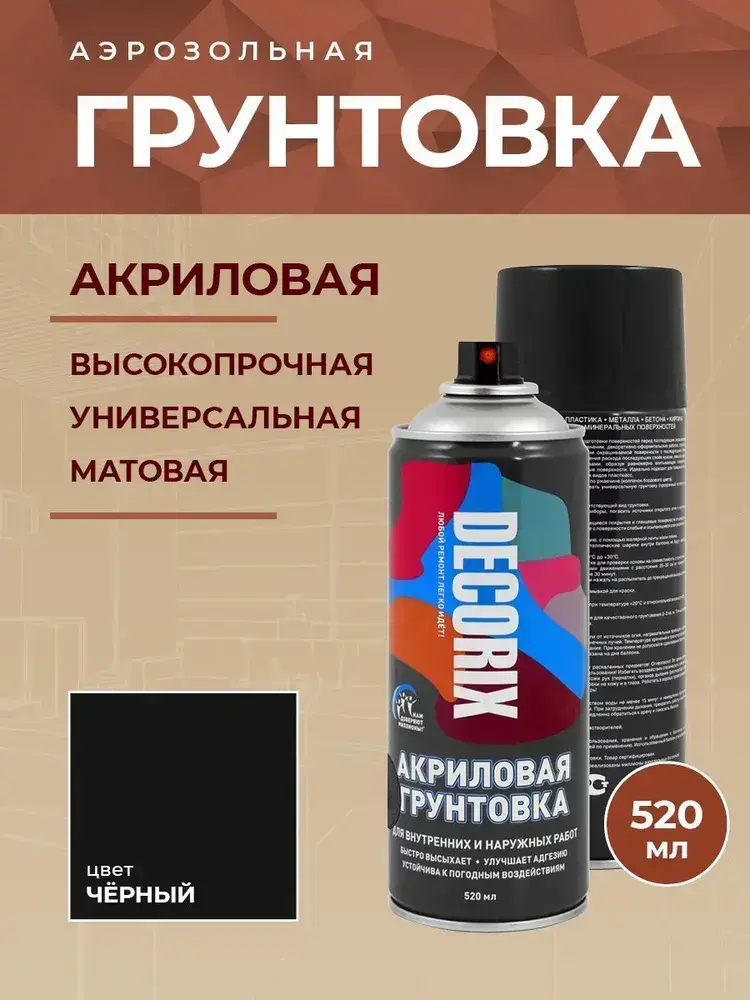 Грунтовка черная в баллончике матовая акриловая - аэрозольный грунт Decorix объем 520 мл