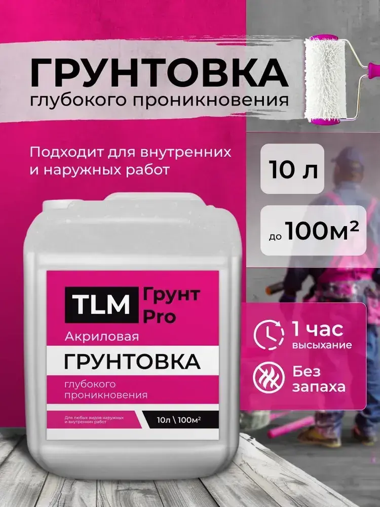 Грунтовка для стен глубокого проникновения, акриловая, под обои, для потолков - 10 л.