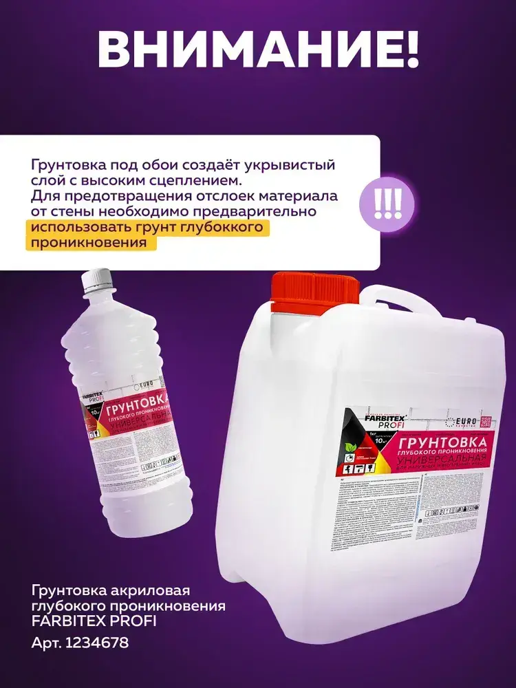 Грунтовка для стен под обои FARBITEX PROFI 4,5 кг, грунтовка белая акриловая укрывающая без запаха