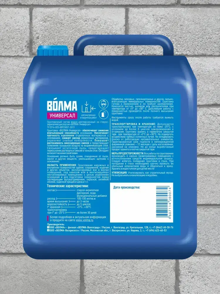 Грунтовка глубокого проникновения ВОЛМА Универсал 10л, грунтовка для стен