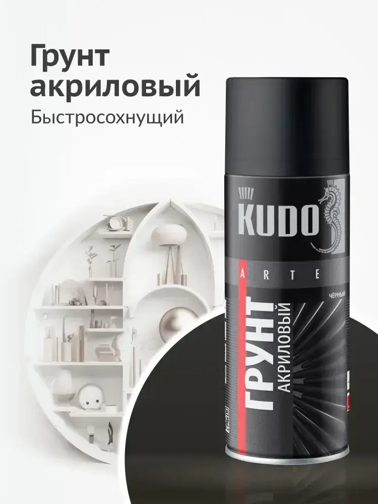 Грунтовка KUDO "Грунт акриловый универсальный быстросохнущий", аэрозоль, баллончик 520 мл, черный
