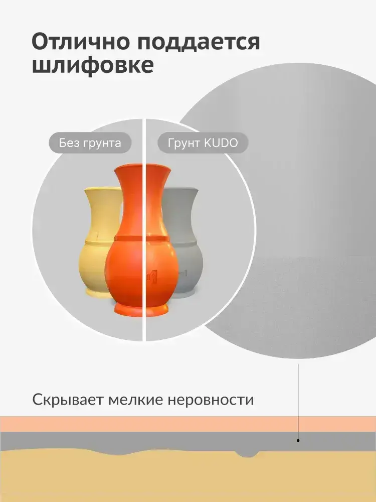 Грунтовка KUDO "Грунт акриловый универсальный быстросохнущий", аэрозоль, баллончик 520 мл, серый