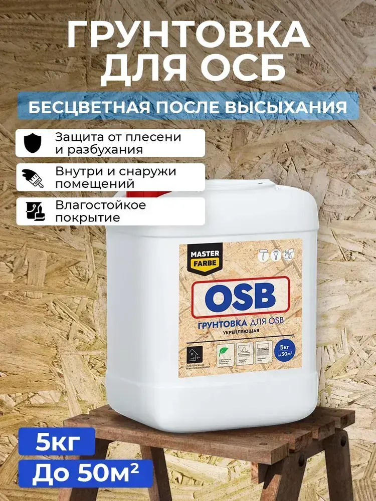 Грунтовка Masterfarbe для OSB плит Для наружных и внутренних работ. 5 кг