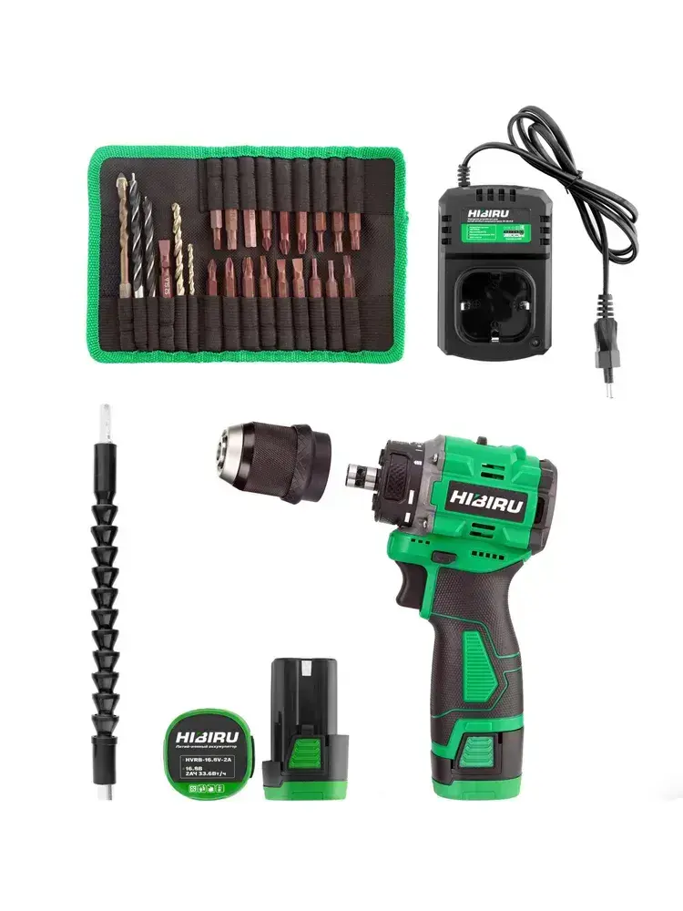 HIBIRU / Бесщеточный аккумуляторный шуруповерт 16.8В 55Нм 2АКБ 2Ач / HIBIRU SRW16, блокировка шпинделя, металлический патрон, кейс, оснастка в комплекте