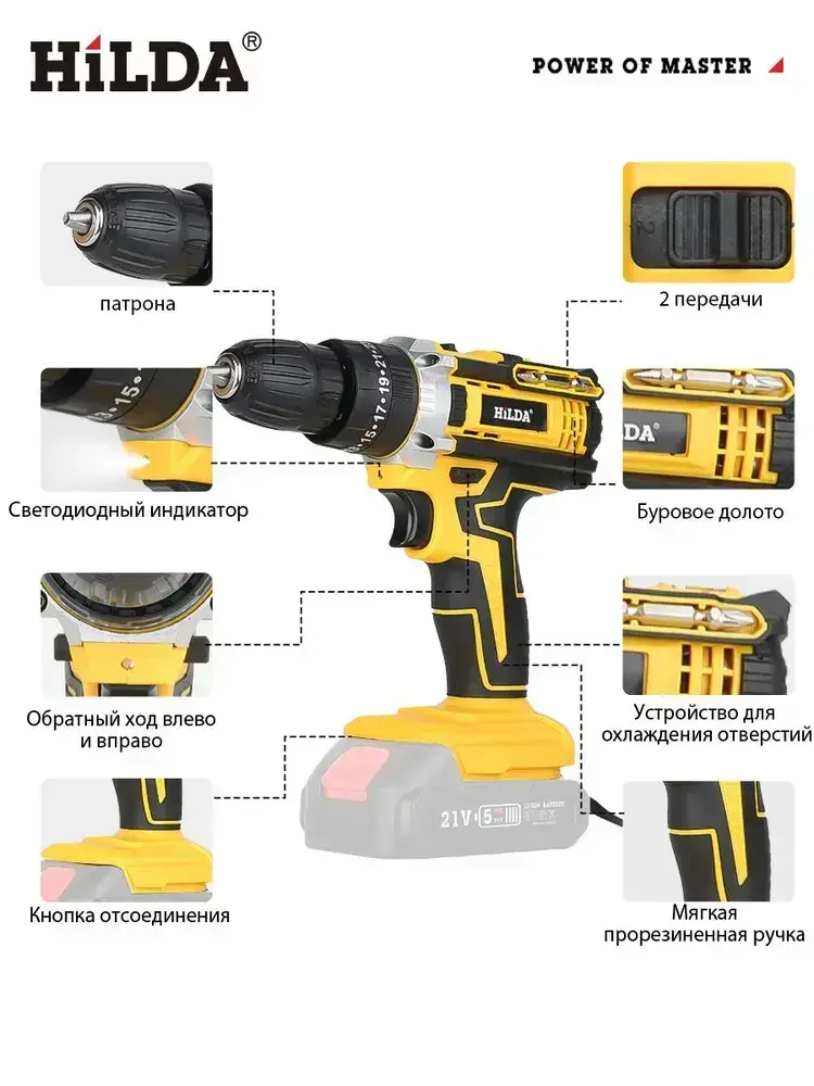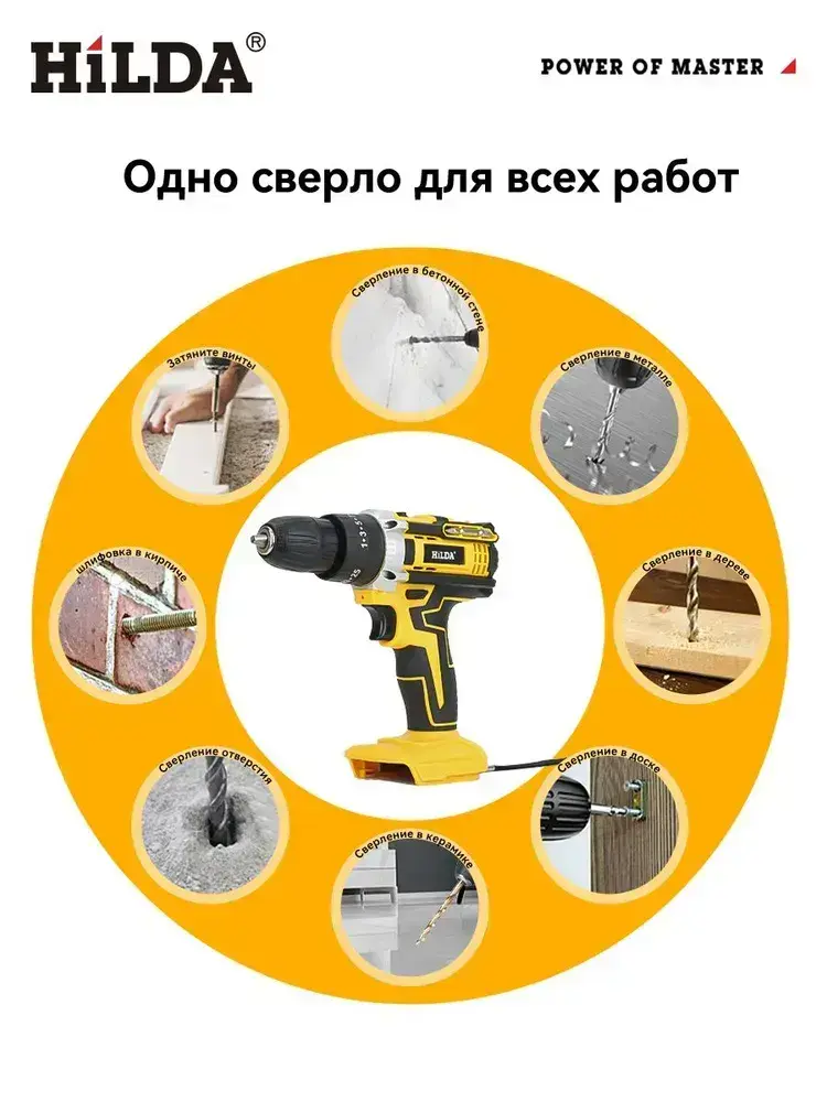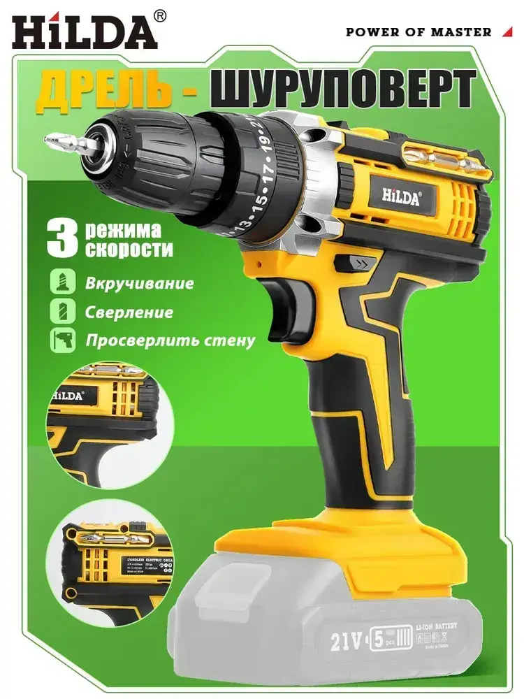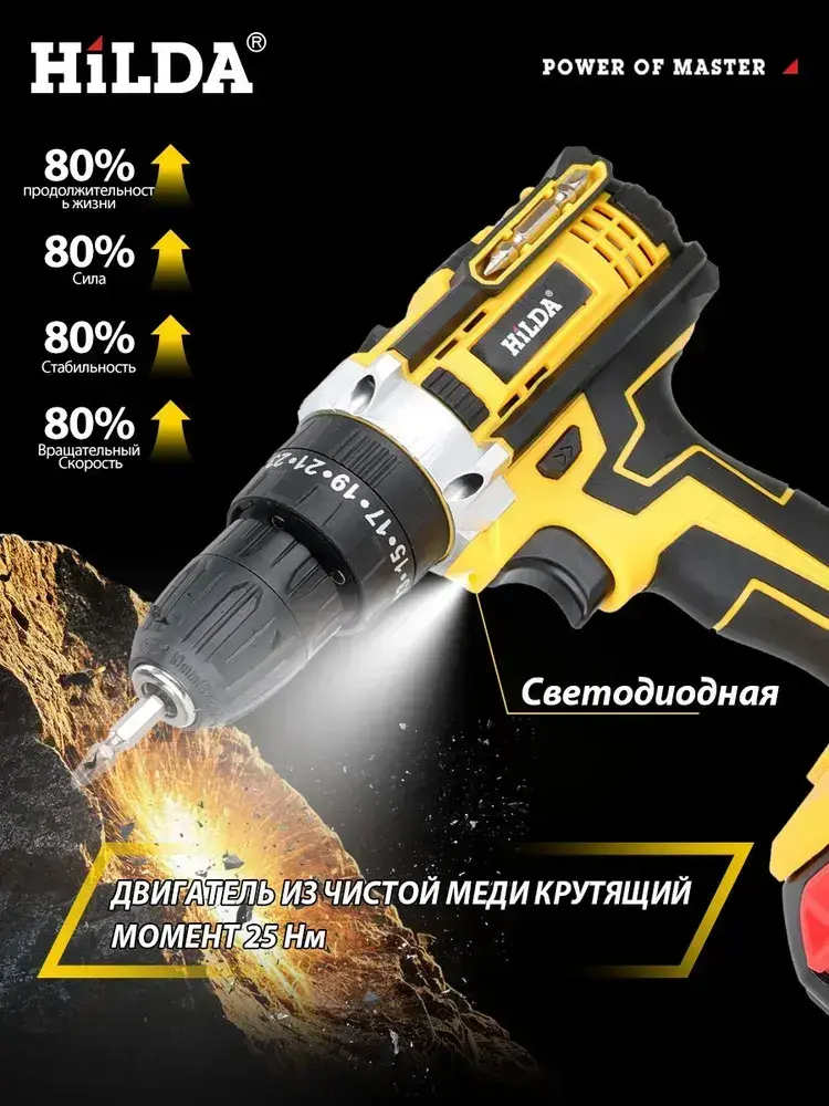 HILDA дрель шуруповерт аккумуляторная 25+3 Режима