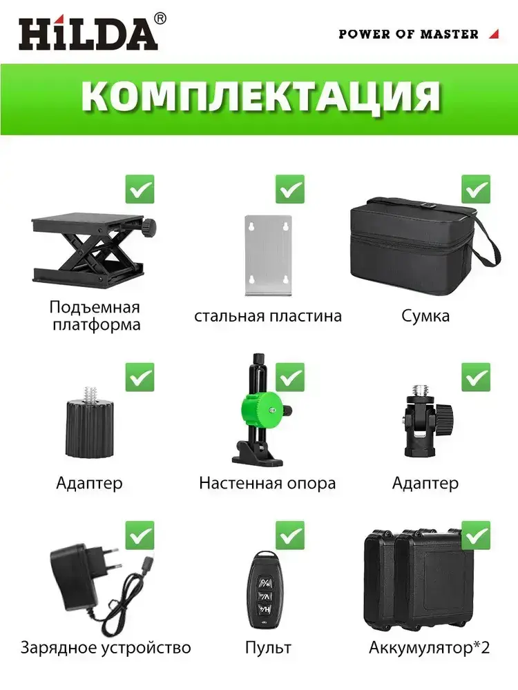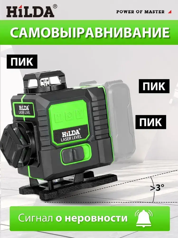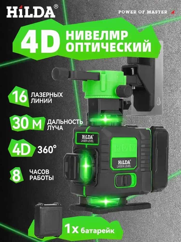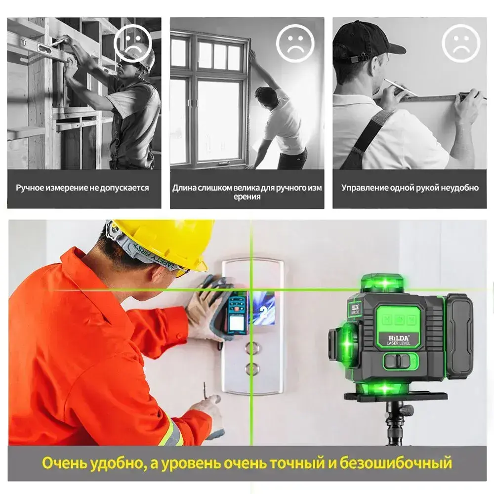HILDA Лазерный уровень нивелир 4D/16 линий,Вращающийся абажур для лампы,Батарея емкостью 6000 мАч