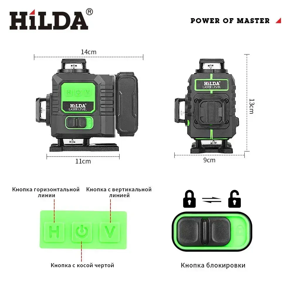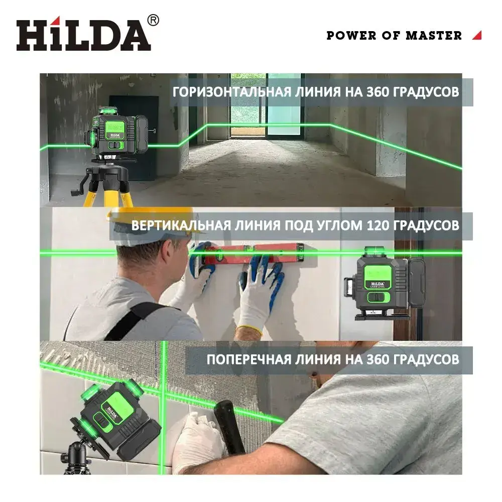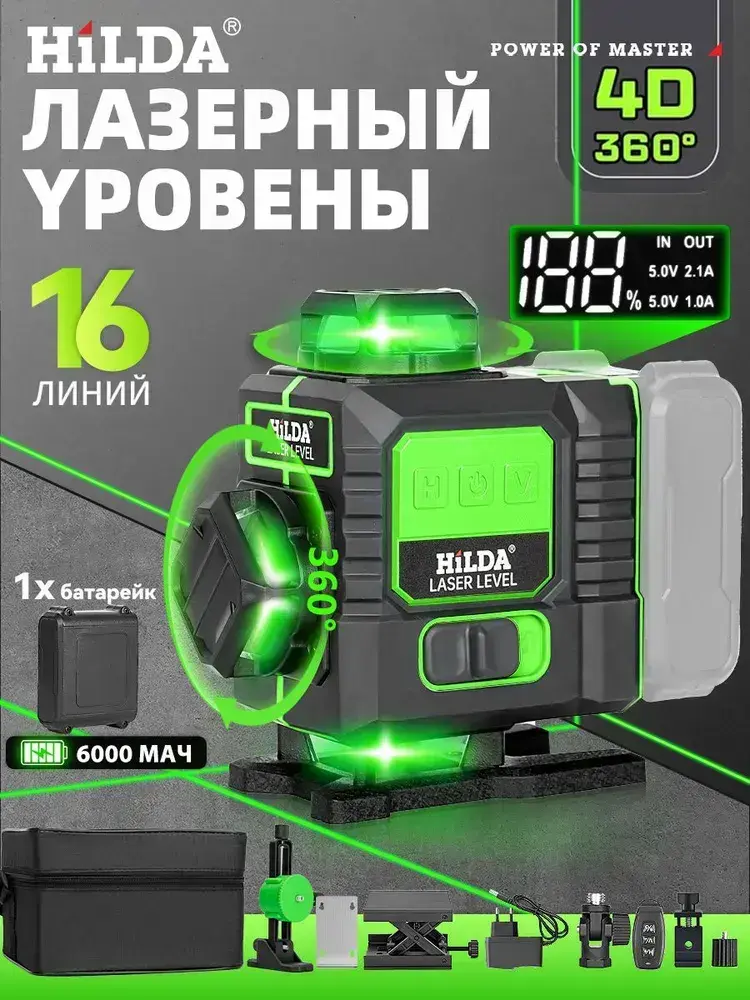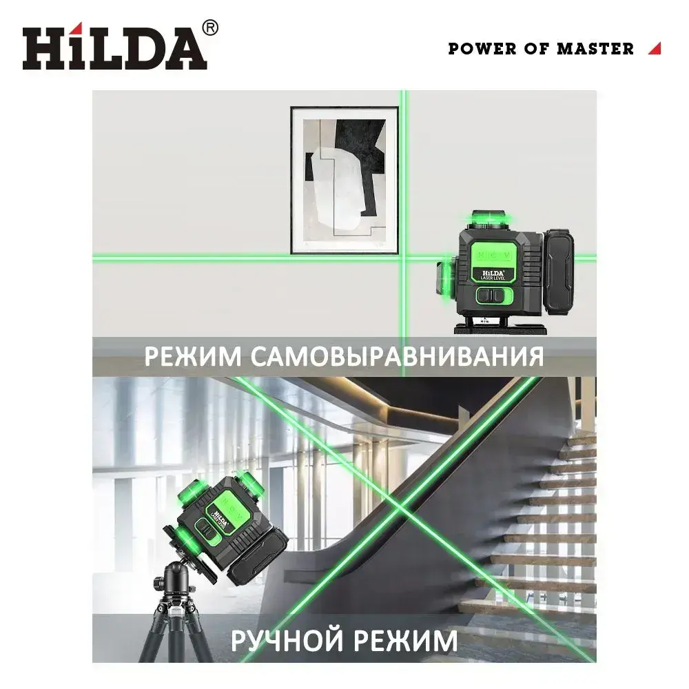 HILDA Лазерный уровень нивелир 4D/16 линий,Вращающийся абажур для лампы,Батарея емкостью 6000 мАч/Праздничные подарки