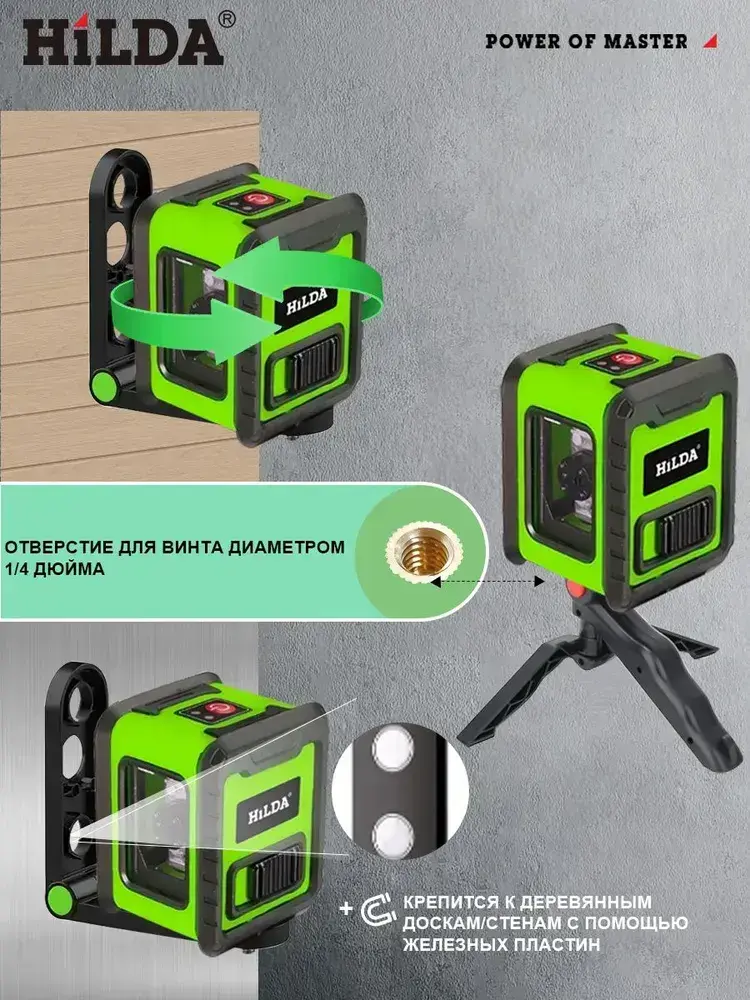 HilDA Лазерный уровень/нивелир Зеленыйлуч, 2 линии