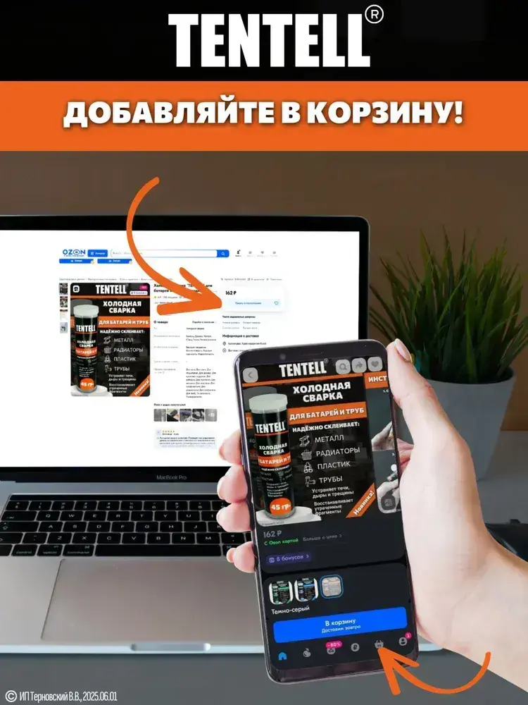 Холодная сварка "TENTELL" для батарей и труб / Холодная сварка для металла