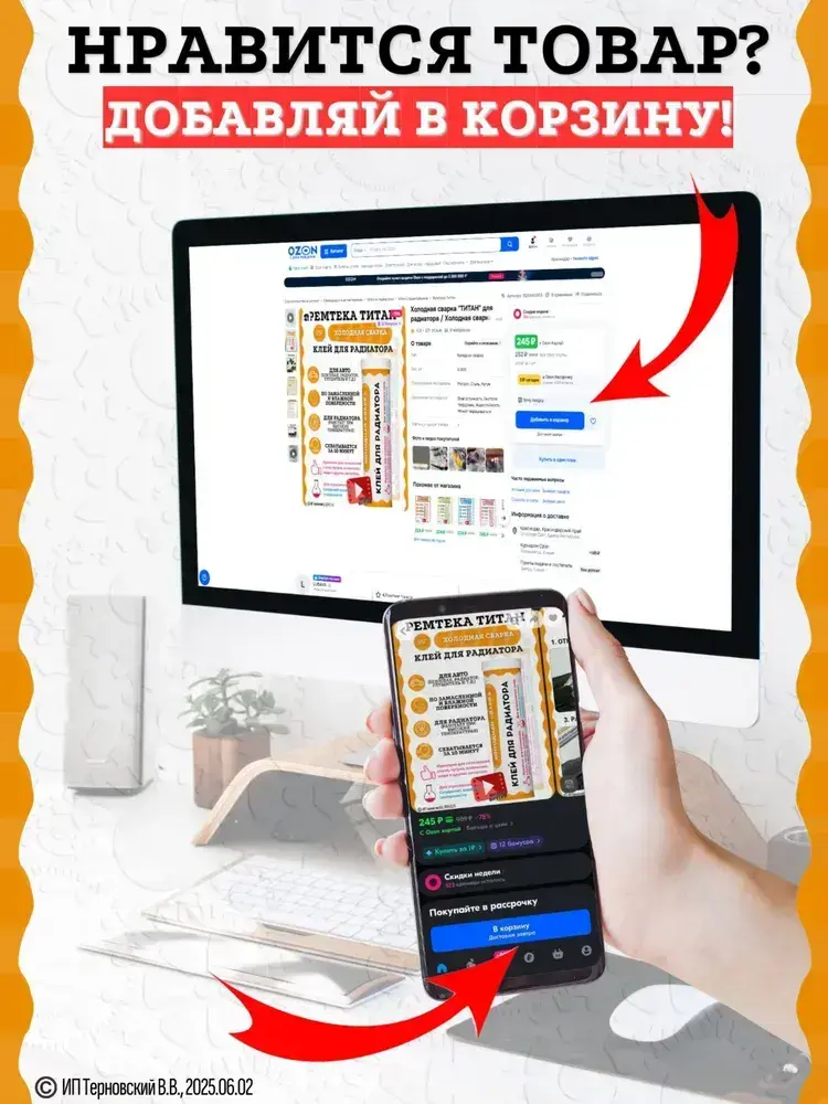 Холодная сварка "ТИТАН" для радиатора / Холодная сварка для металла