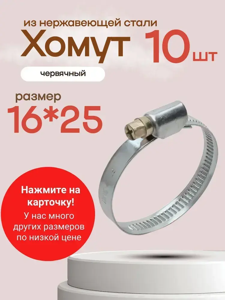 Хомут червячный 16*25, 10штук. Хомут металлический из нержавеющей стали для шлангов и труб