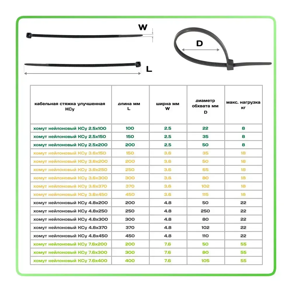 Хомут стяжка пластиковая, хомут нейлоновый черный 4,8х200мм