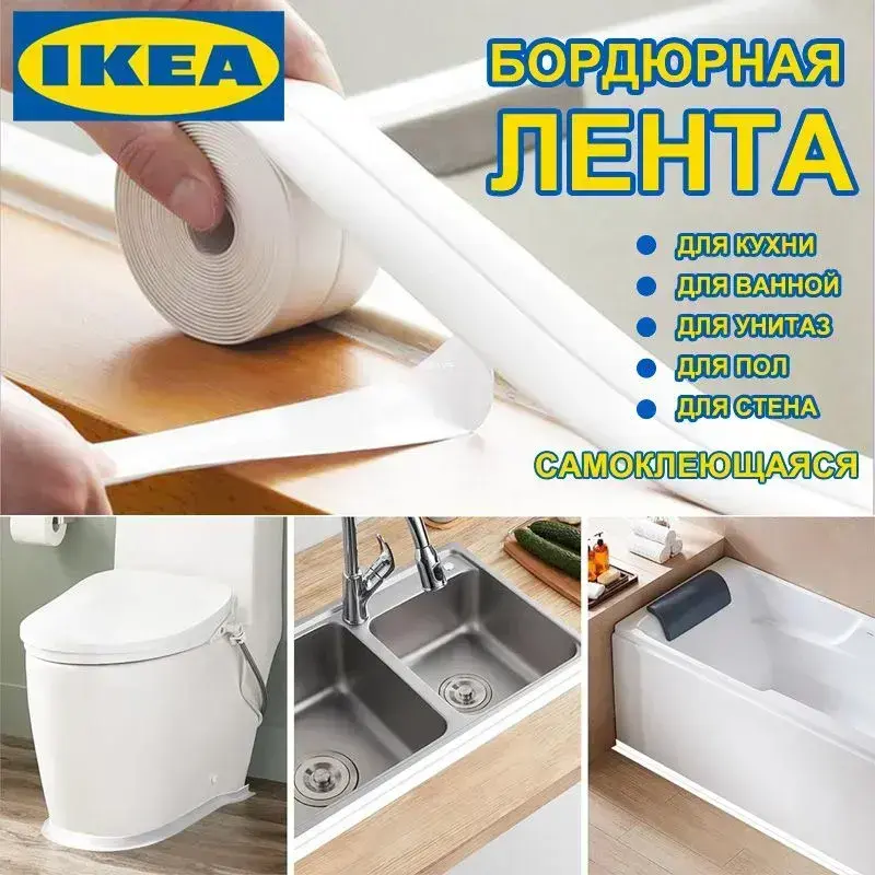 IKEA Бордюрная лента для ванны, кухни, белая 60мм*3,20 м. Самоклеющаяся декоративная водонепроницаемая лента