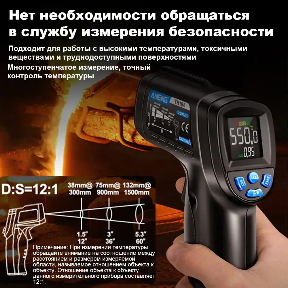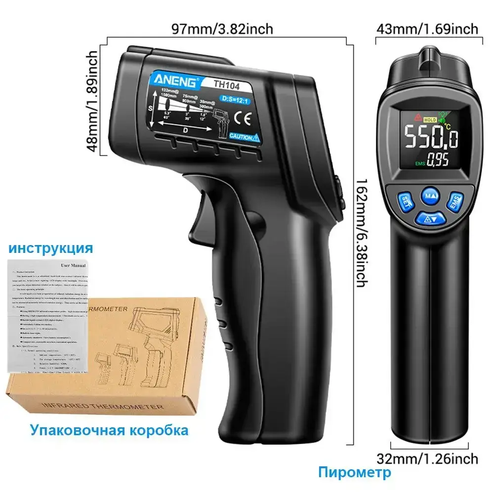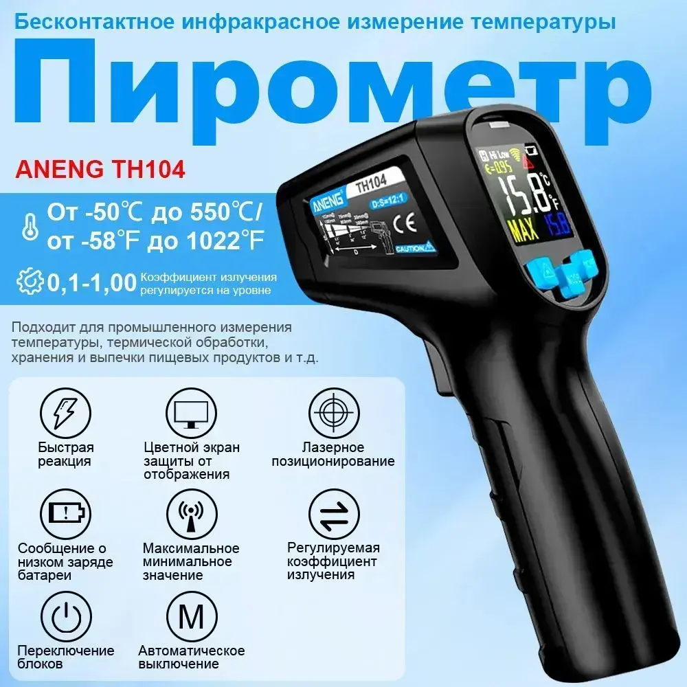 Инфракрасный бесконтактный пирометр, ANENG TH104, промышленный термометр, кухонный термометр