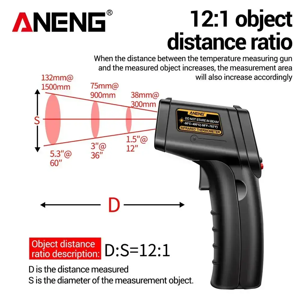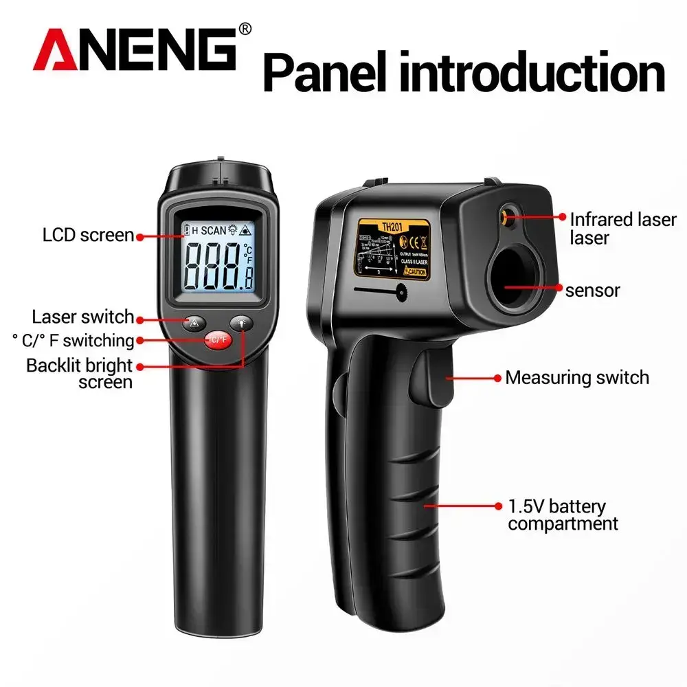 инфракрасный лазерный пирометр, ANENG TH201 Чёрный,